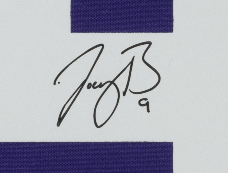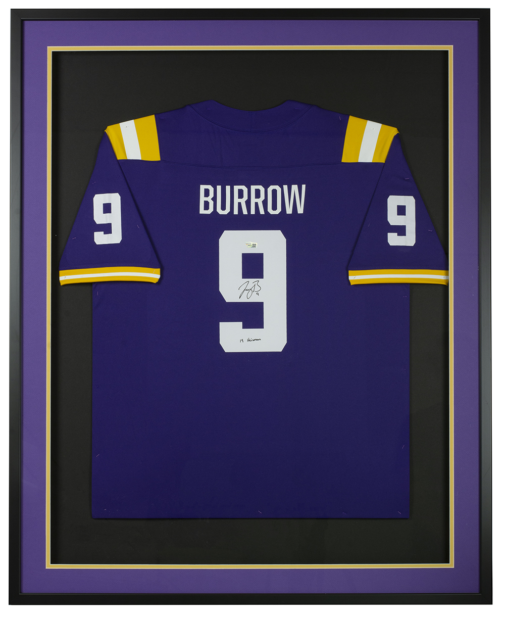Custom frame measures approximately 34.5" x 42.5" in size and showcases a jersey which has been hand-signed and inscribed by Joe Burrow.
