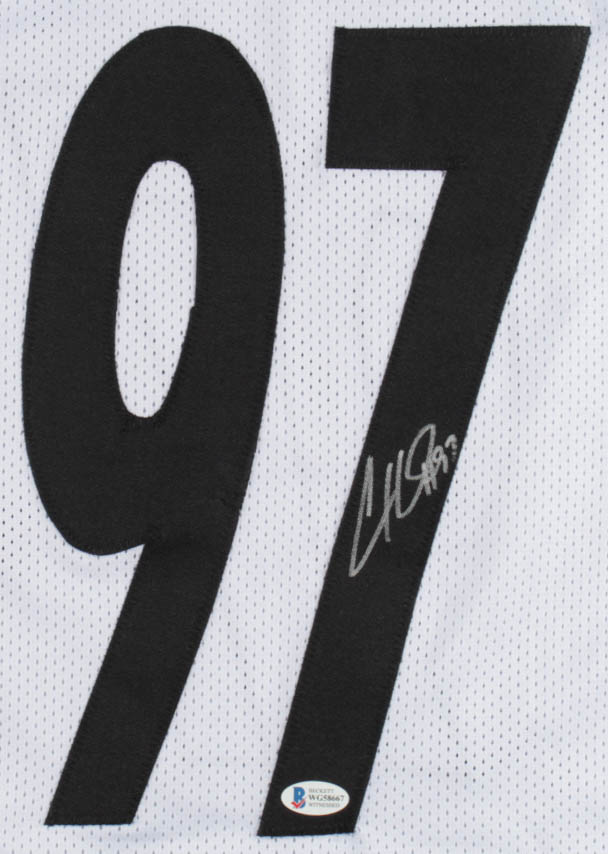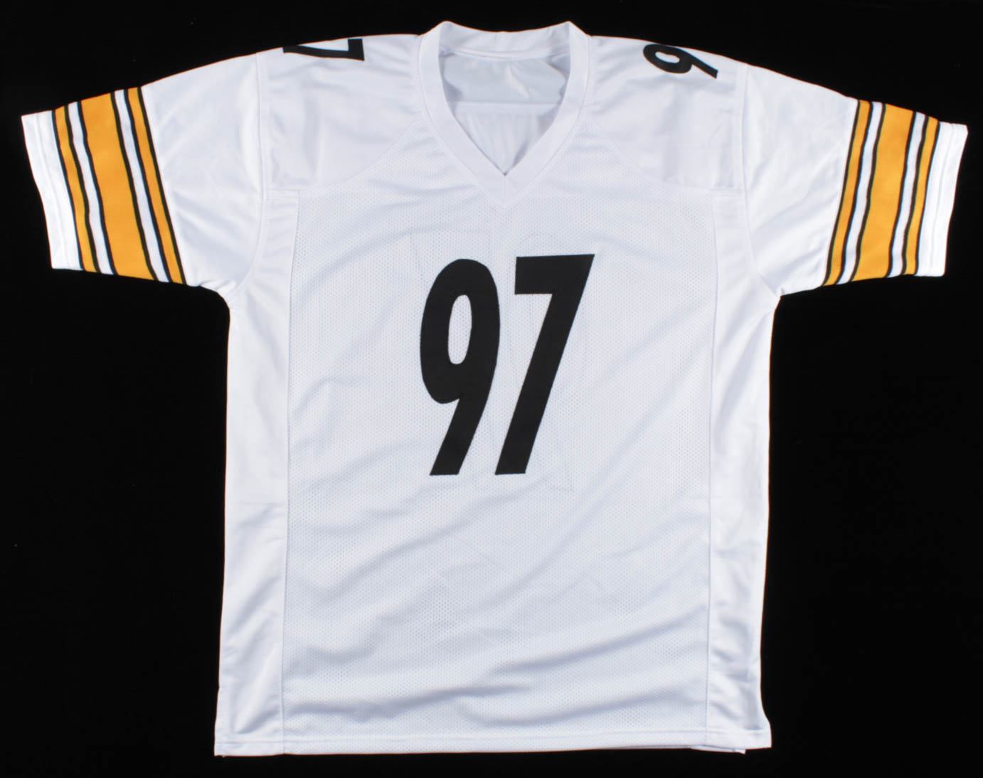 Custom on-field style jersey. Everything is sewn on, size XL. Has been hand-signed by Cameron Heyward.