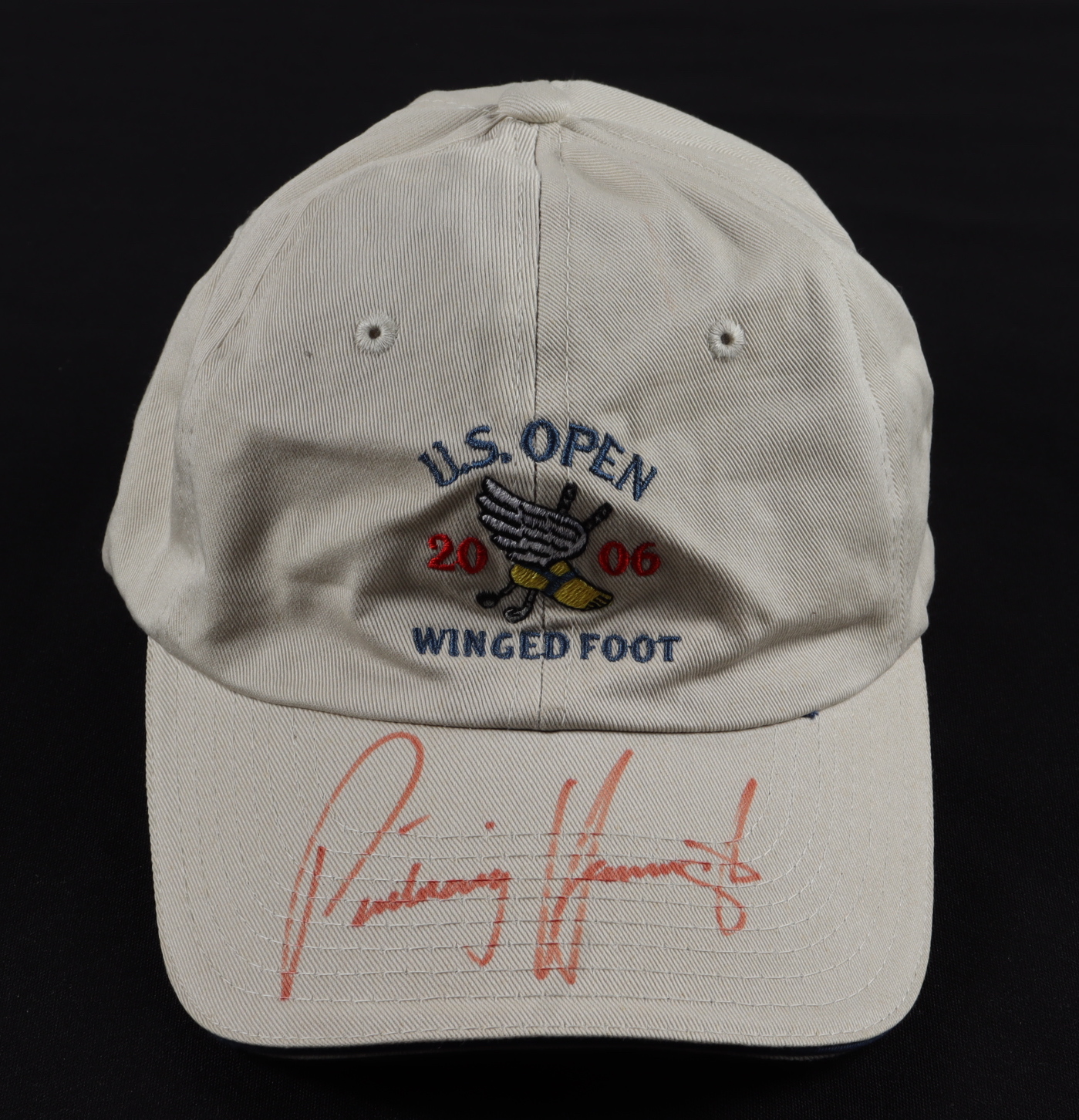 USGA 2006 U.S. Open Winged Foot adjustable hat has been hand-signed by Padraig Harrington.