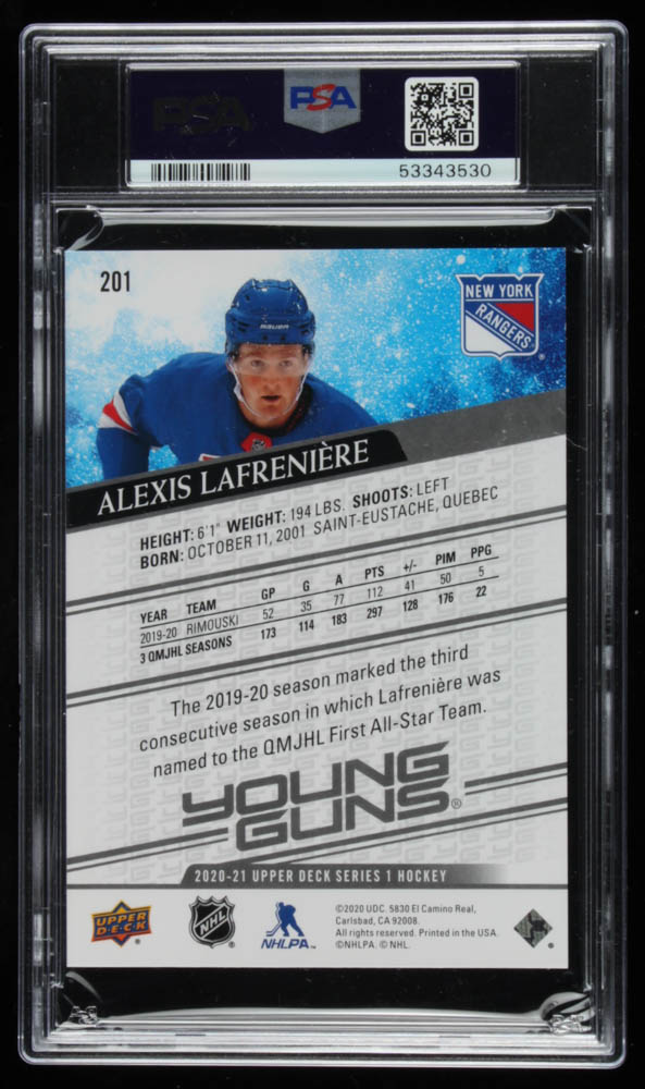 Alexis Lafreniere 2020-21 Upper Deck #201 YG Jumbo RC (PSA 7)