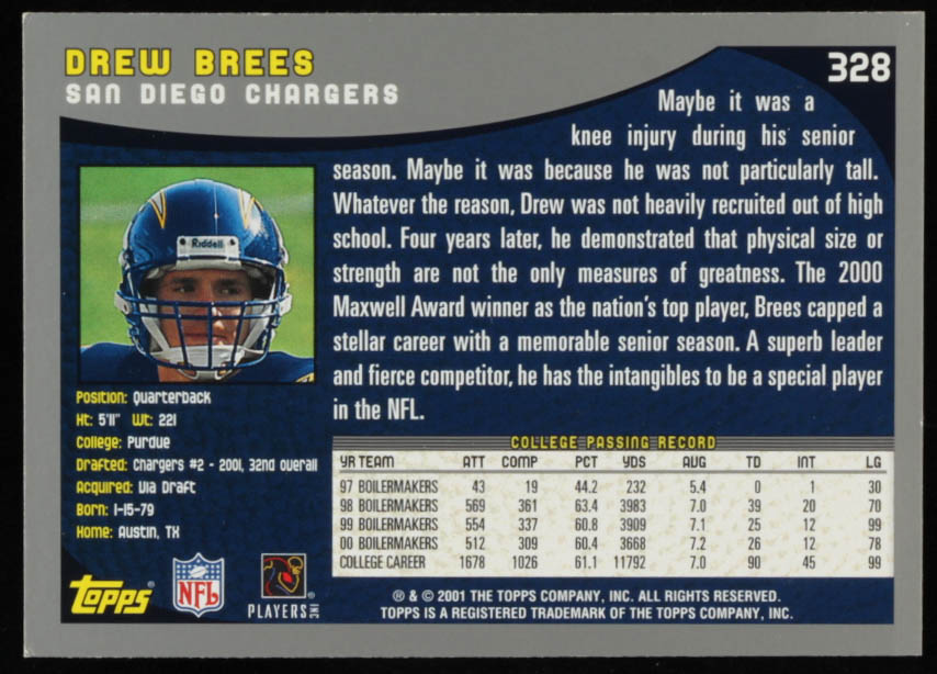 Drew Brees 2001 Topps #328 RC
