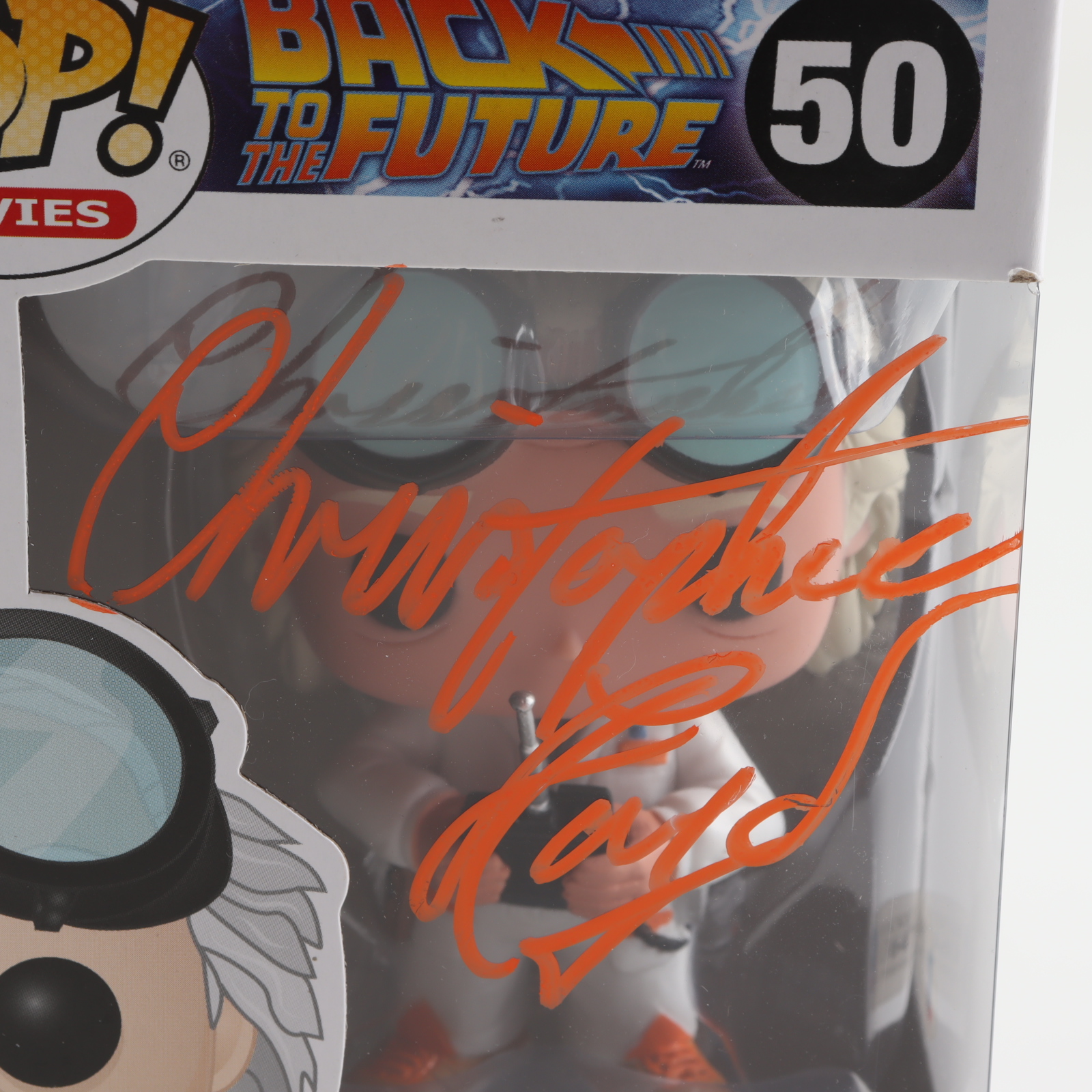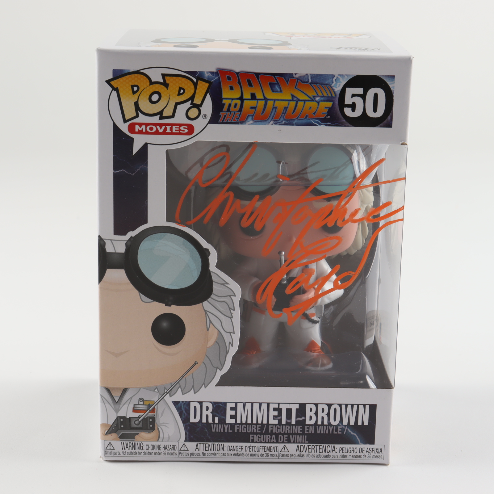 Funko Pop! vinyl figure measures approximately 4" tall and has been hand-signed on the packaging by Christopher Lloyd.