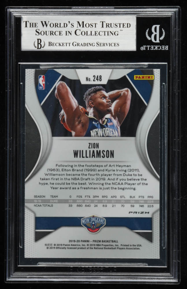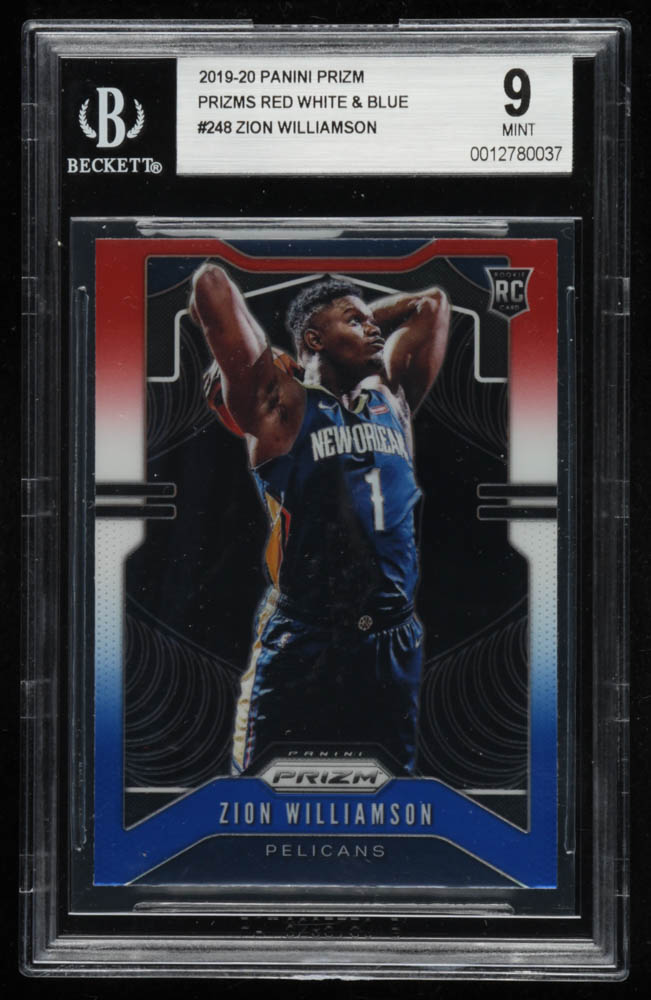 Zion Williamson 2019-20 Panini Prizm Prizms Red White & Blue #248 RC (BGS 9)
