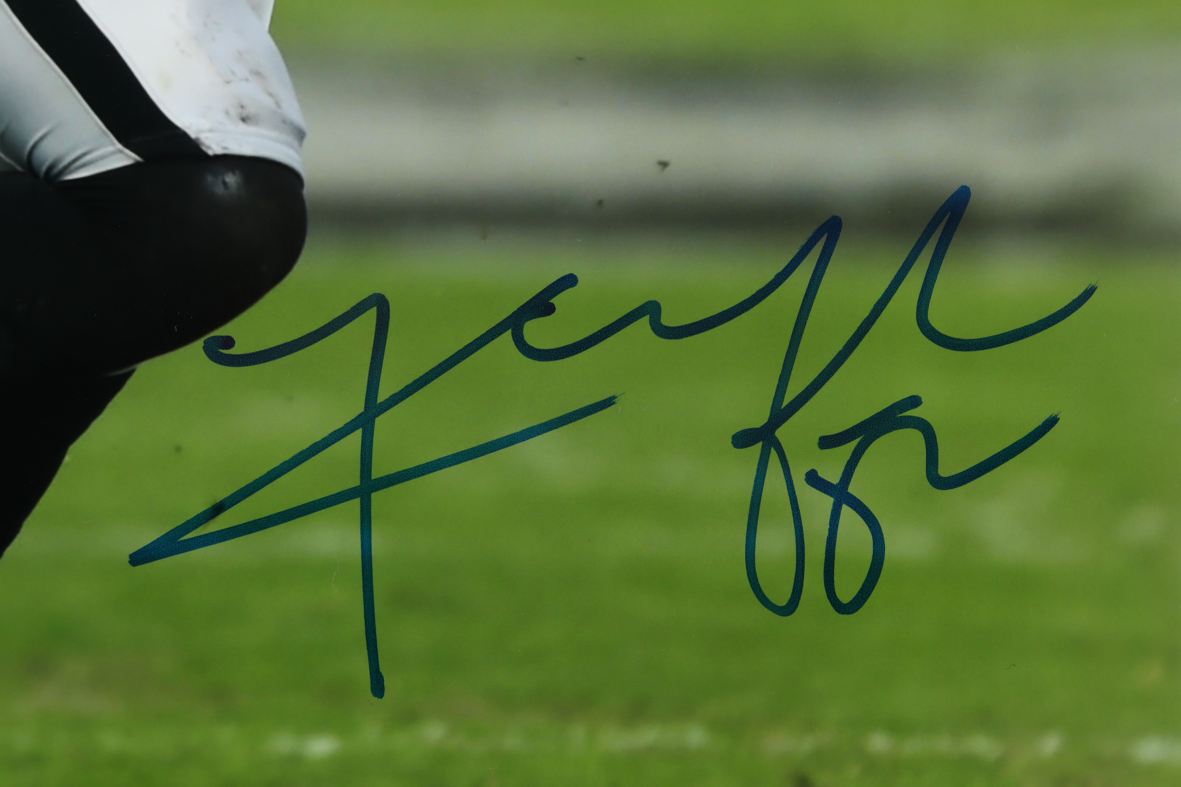 Photo measures 11" x 14" in size and has been hand-signed by Khalil Mack (Oakland Raiders).