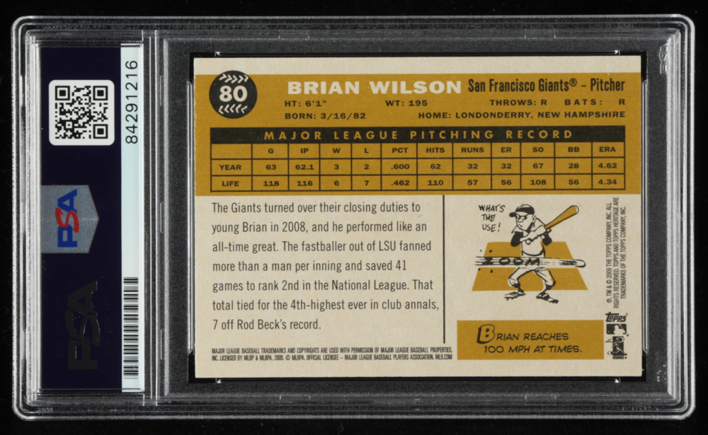 Brian Wilson Signed 2009 Topps Heritage #80 (PSA Encapsulated)