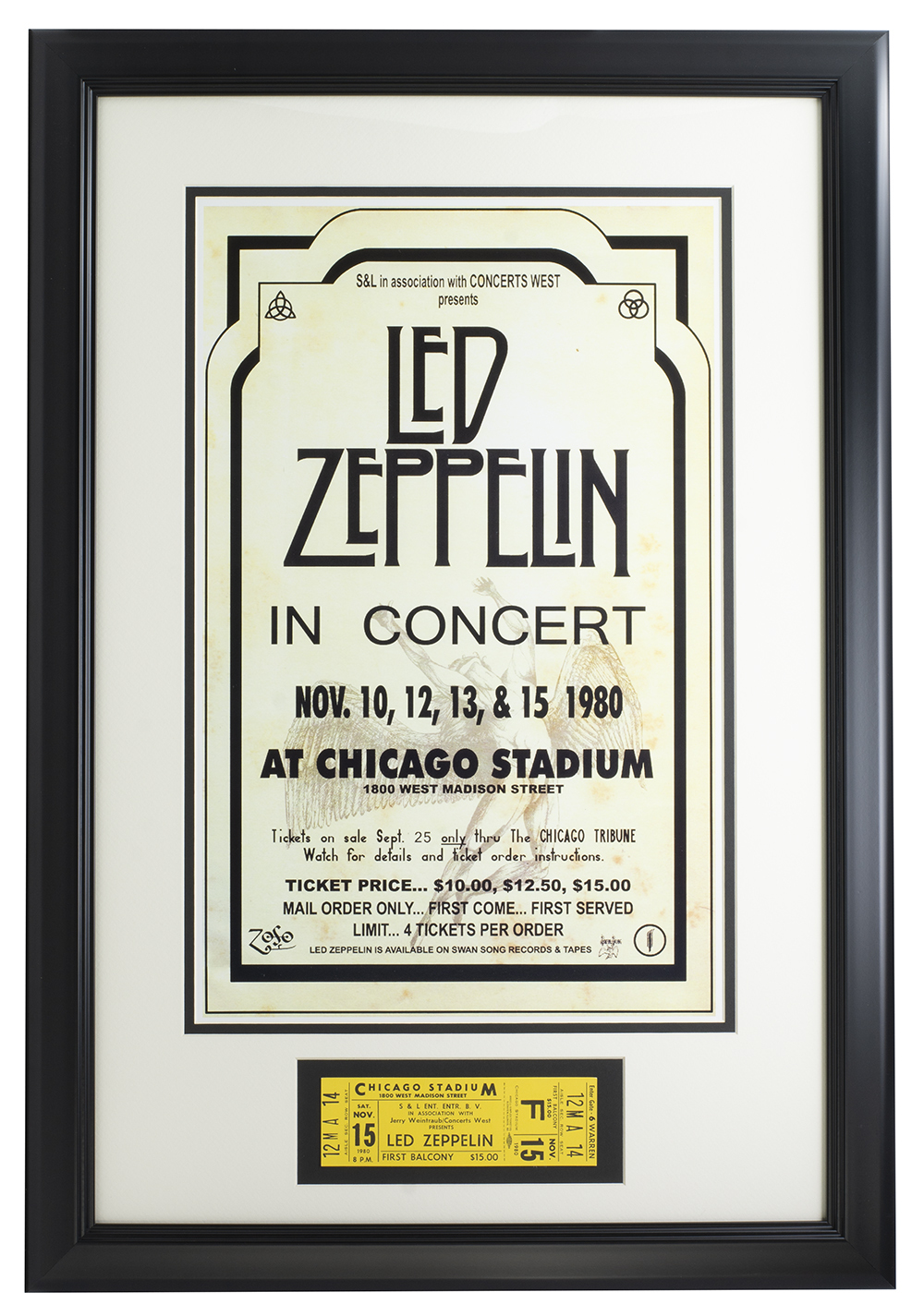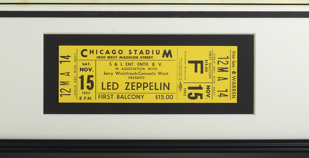 Led Zeppelin 16x23 Custom Framed Ad Print Display with 1980 Original Concert Ticket