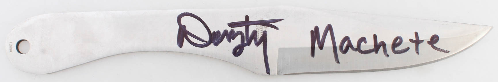 Knife is made of stainless steel and measures 8" in length. Has been hand-signed and inscribed by Danny Trejo.