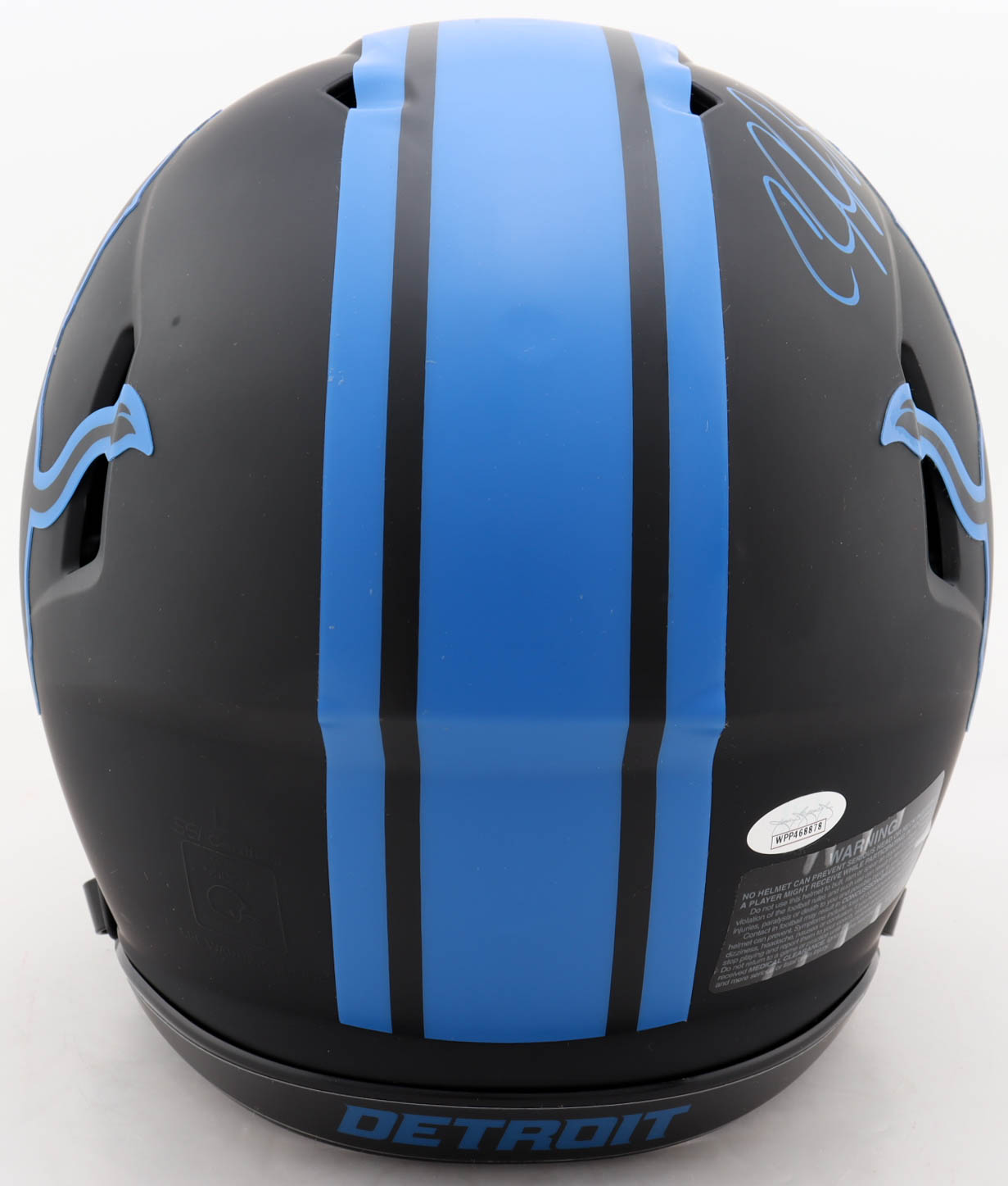 Riddell Detroit Lions full-size authentic on-field Eclipse Alternate Speed helmet. Hand-signed by Calvin Johnson. Please note, there is a scratch on the right side of the helmet.