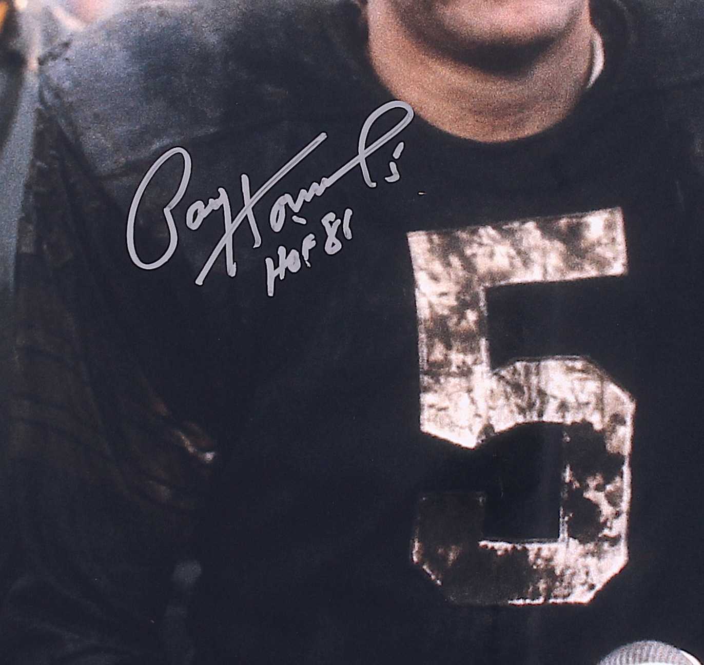 Photo measures 16" x 20" in size and has been hand-signed and inscribed in white paint pen by Paul Hornung (HOF). The autograph includes an official James Spence Authentication (JSA) hologram and matching COA for authenticity purposes. The signing of this item was witnessed by JSA.