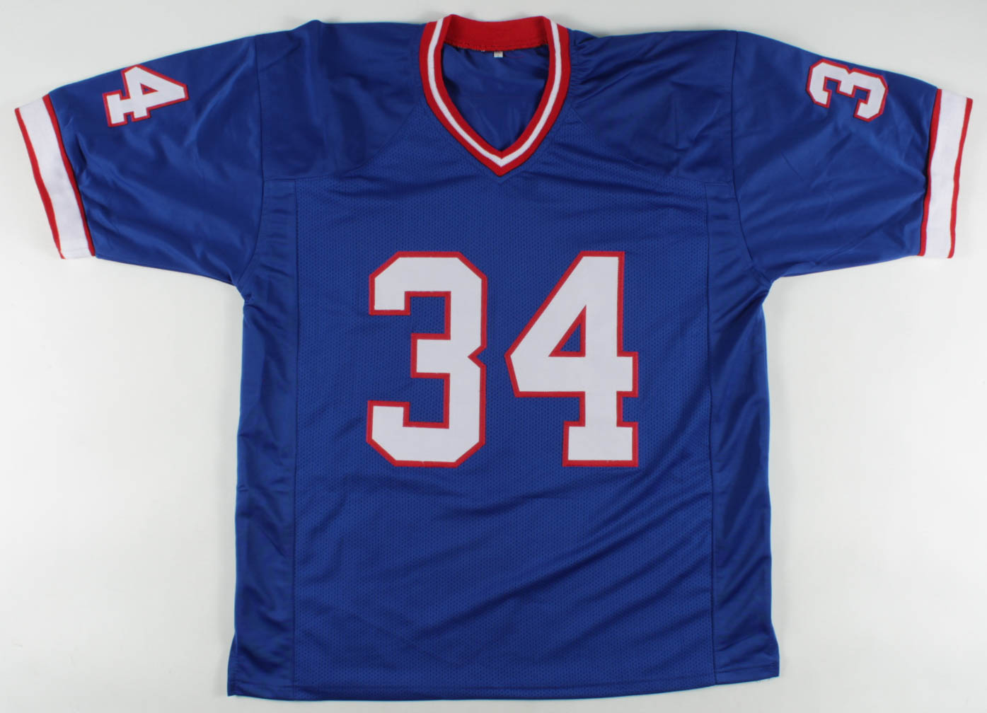 Custom on-field style jersey. Everything is sewn on, size XL. Has been hand-signed by Thurman Thomas (HOF).