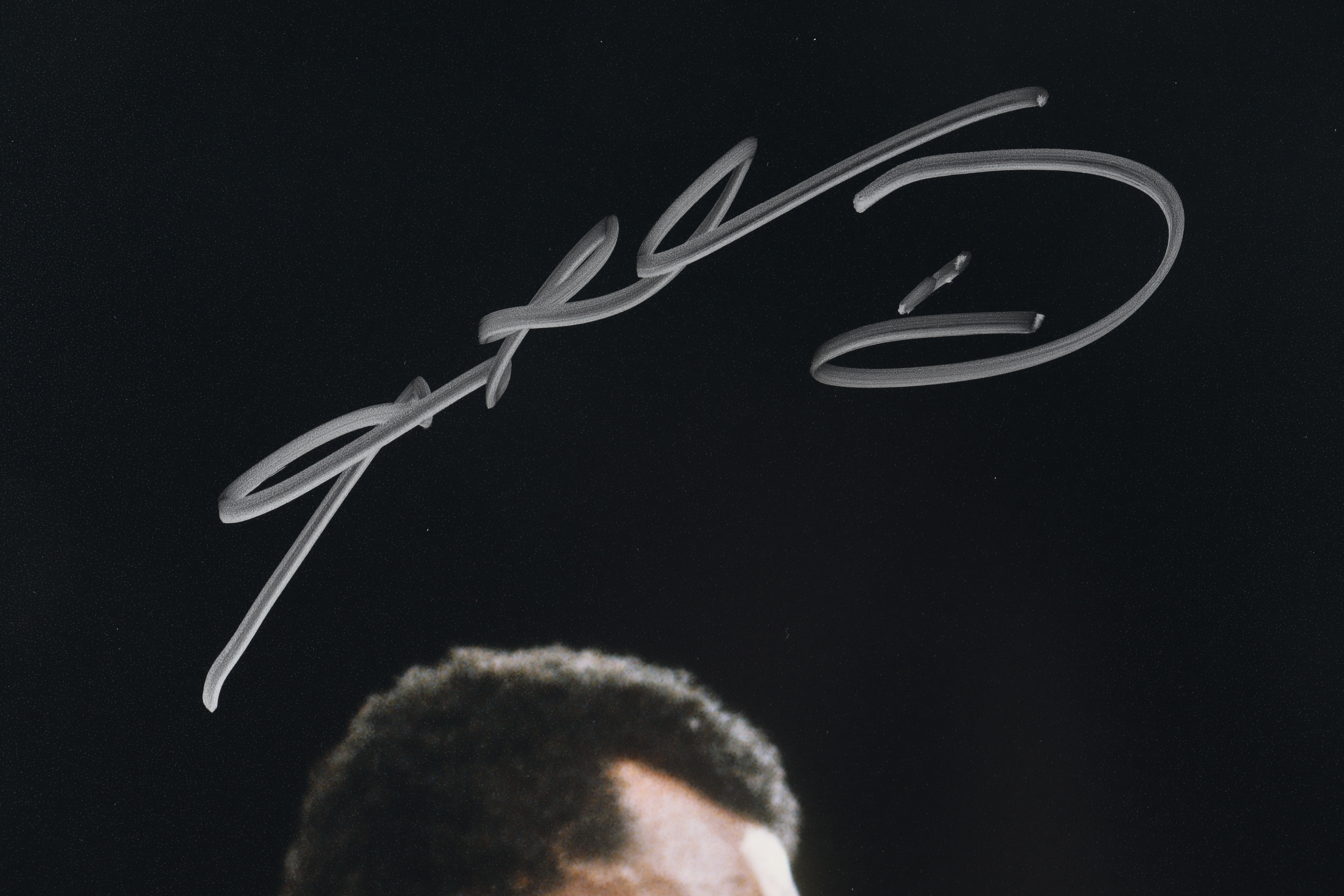 Photo measures 16" x 20" in size and has been hand-signed by Sugar Ray Leonard (HOF) and Thomas Hearns (HOF).