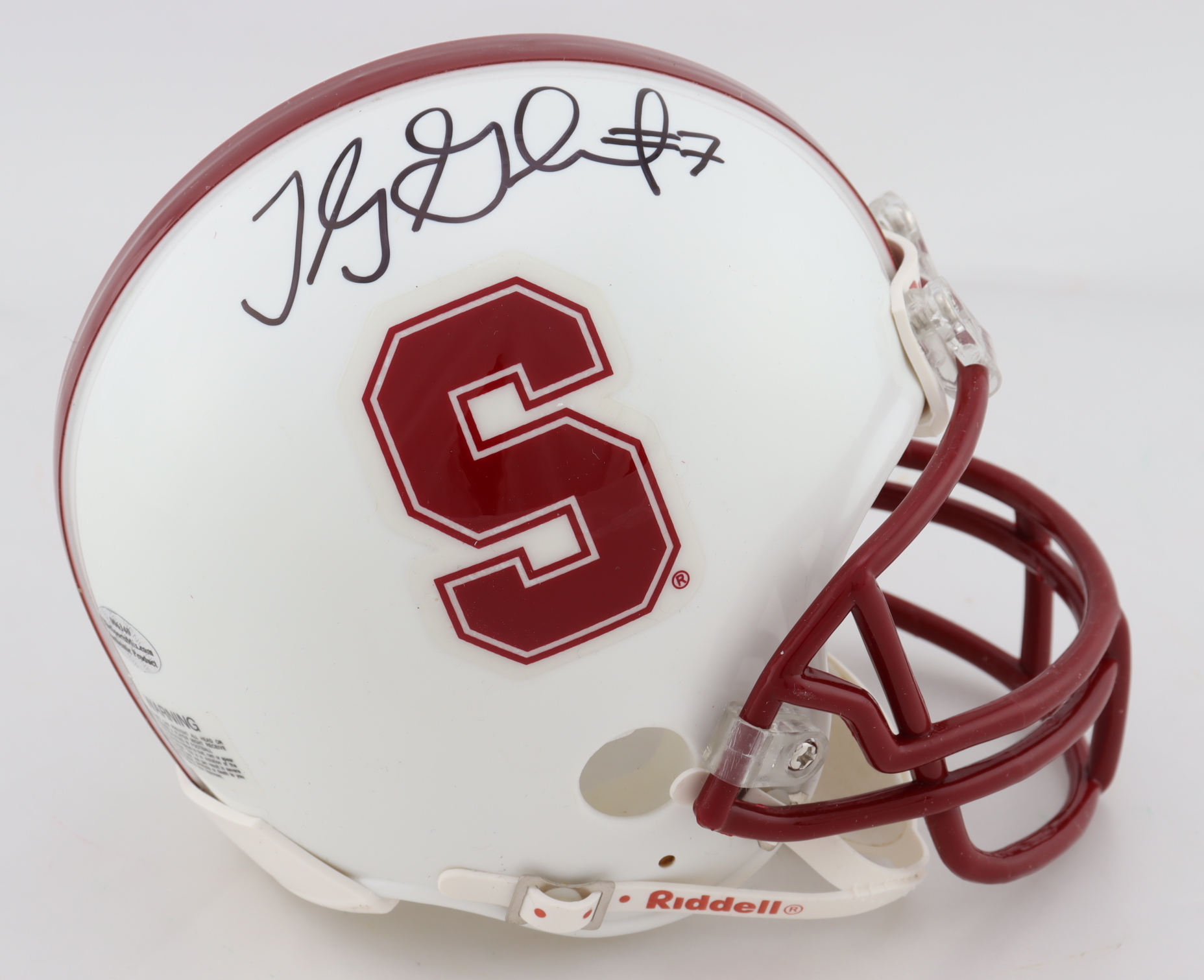 Riddell Stanford Cardinal mini-helmet has been hand-signed by Toby Gerhart.