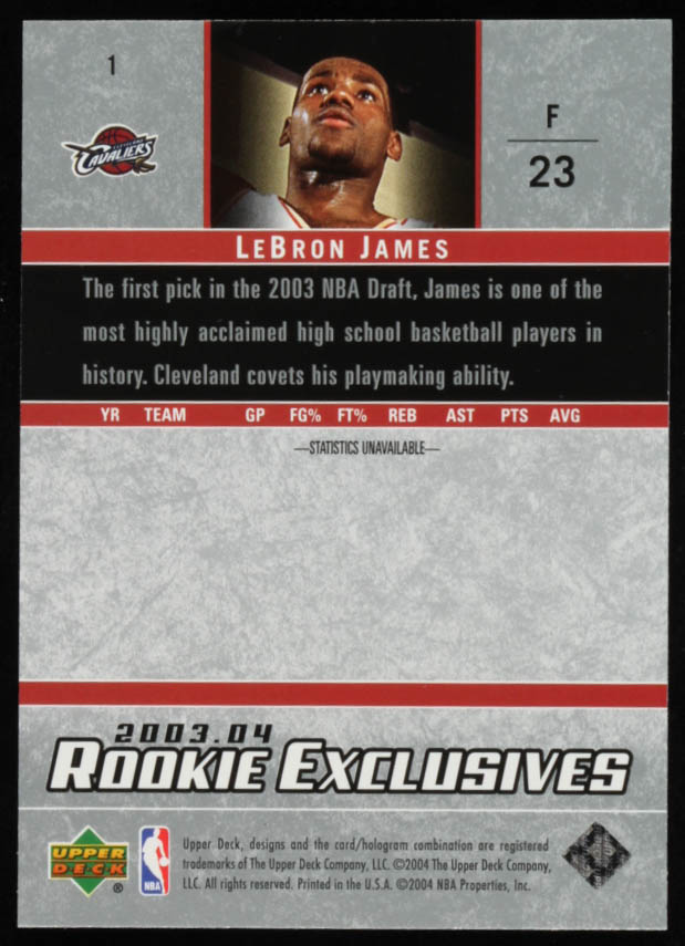 LeBron James 2003-04 Upper Deck Rookie Exclusives #1 RC