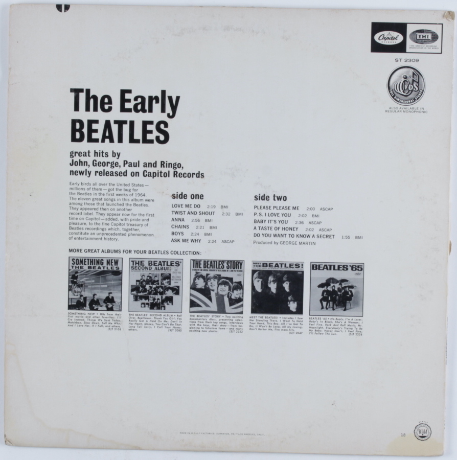 The Beatles "The Early Beatles" Vinyl Record Album. Please note, please vinyl record is included. Please note, there is a water damage to the cover of the album.