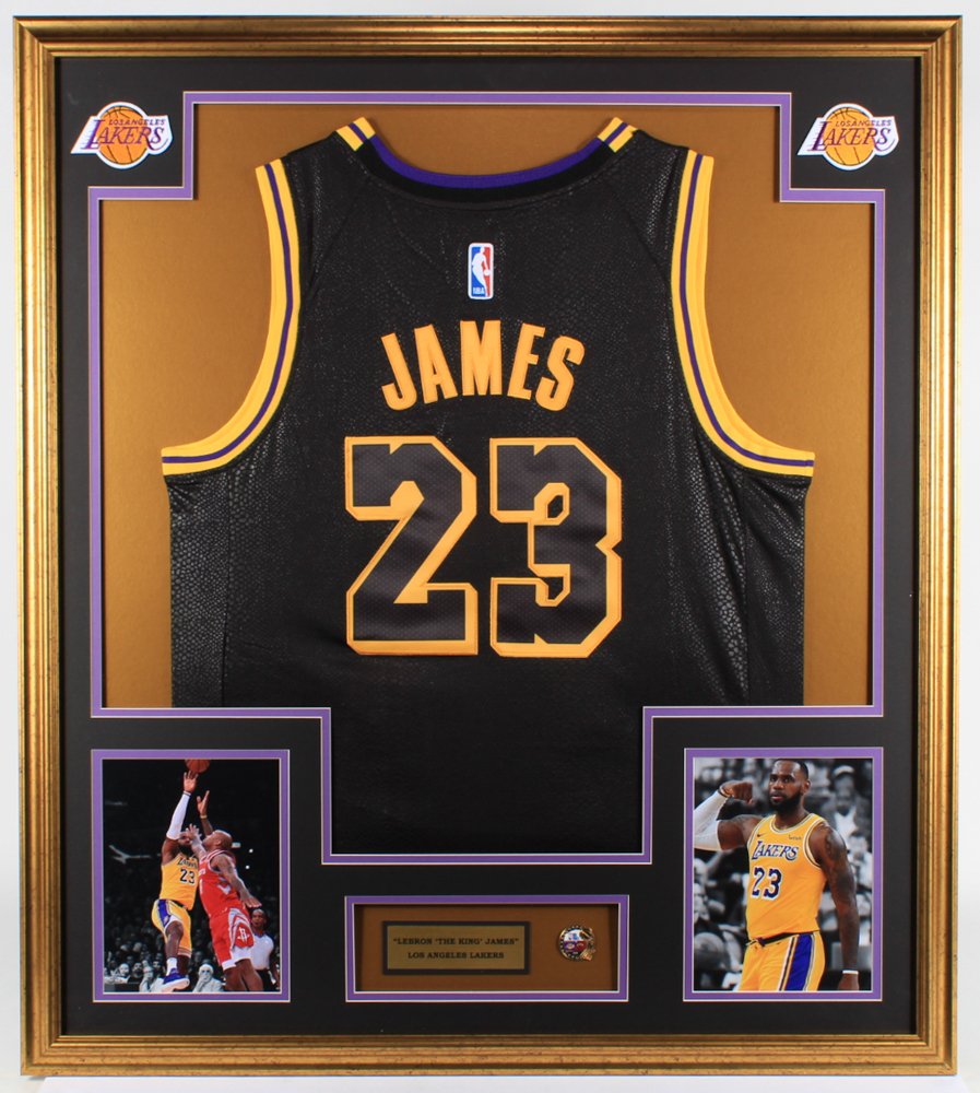 LeBron James 32x36 Custom Framed Jersey with Lakers Championship Pin