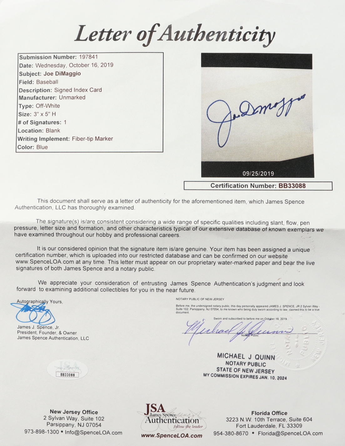 The lot / autograph(s) includes an official James Spence Authentication (JSA) hologram and matching LOA for authenticity purposes.