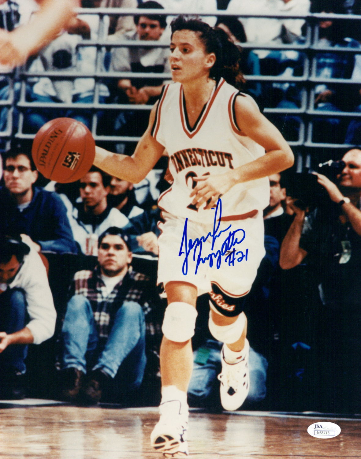 Photo measures 11" x 14" in size and has been hand-signed in blue felt tip pen by Jennifer Rizzotti. The autograph includes an official James Spence Authentication (JSA) hologram and matching COA for authenticity purposes.