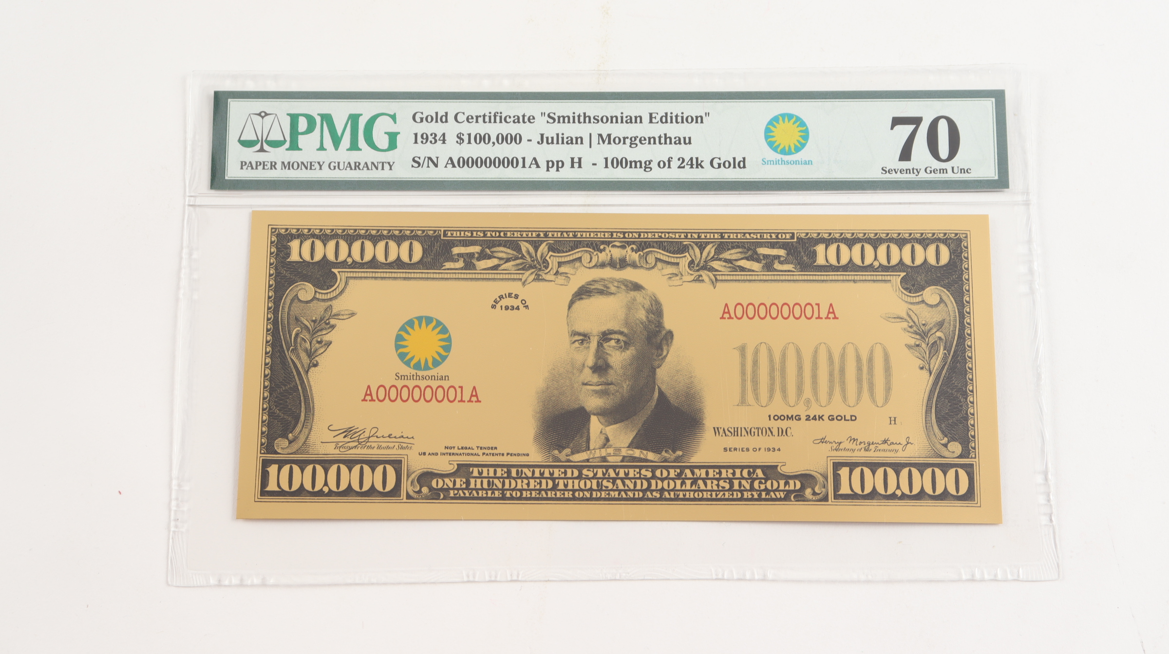 1934 $100,000 "Smithsonian Edition" Gold Certificate (PMG 70)