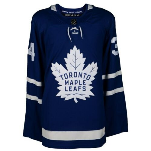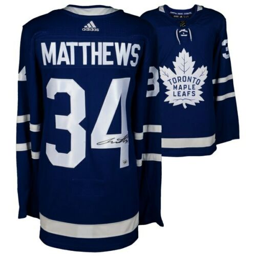 Adidas on-ice style jersey. Everything is sewn on, size 54. Hand-signed in black felt-tip pen by Auston Matthews (Toronto Maple Leafs).