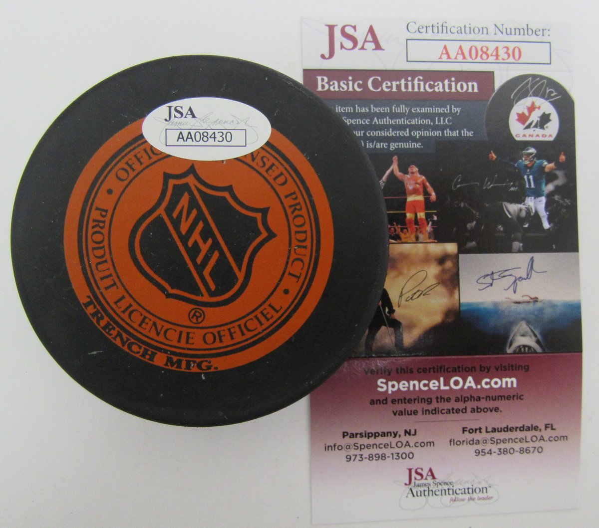 Bernie Parent Signed Flyers Logo Hockey Puck (JSA COA)