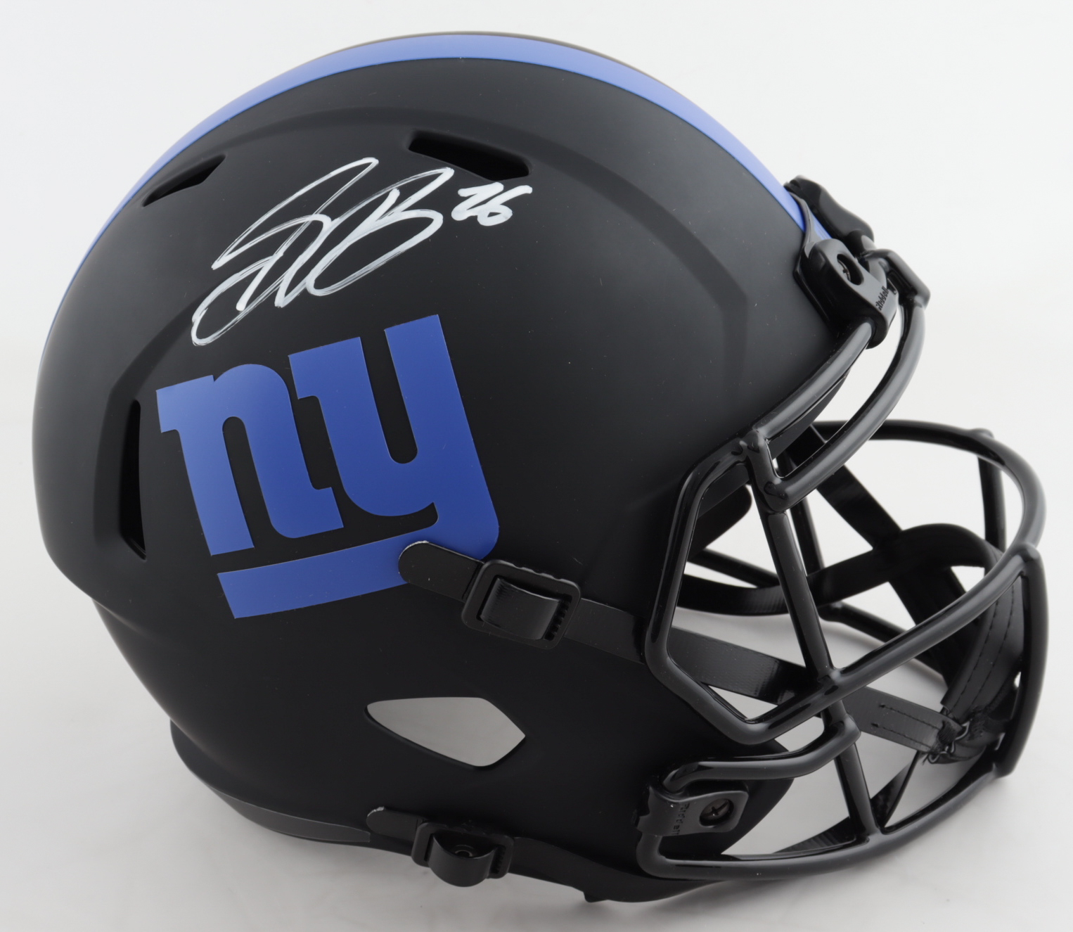 Riddell New York Giants full-size Eclipse Alternate Speed replica helmet has been hand-signed by Saquon Barkley.