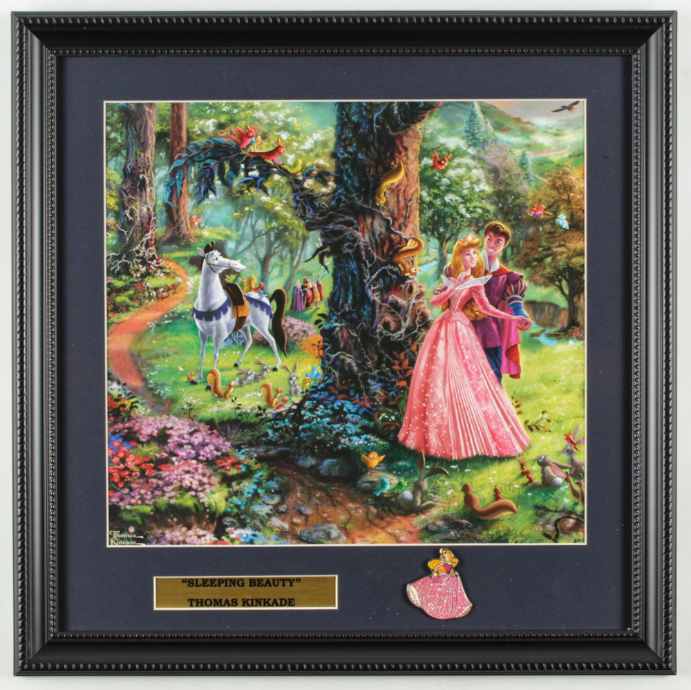 Thomas Kinkade Walt Disney's "Sleeping Beauty" 16x16 Custom Framed Print Display with Sleeping Beauty Pin