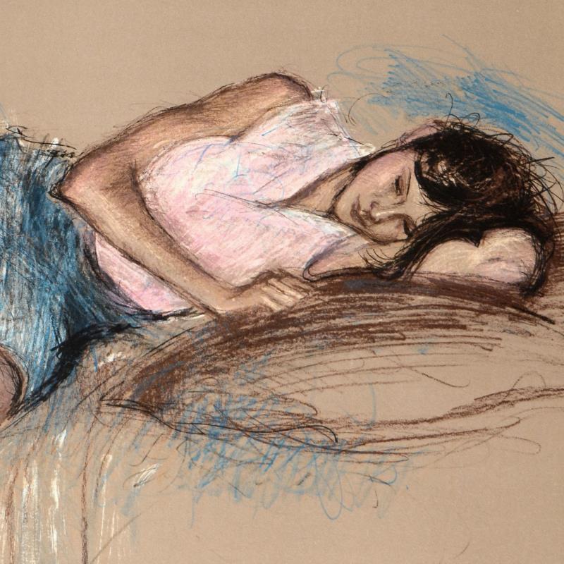 "Repose" is a limited edition lithograph on paper by Pecard, numbered and hand signed by the artist. Measures approx. 30" x 22" (border). 26" x 20" (image).