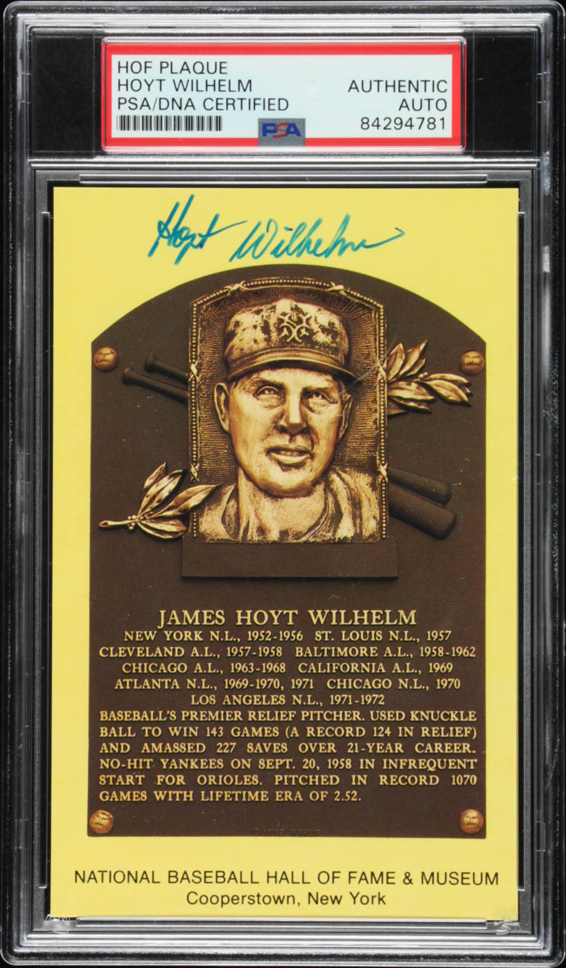 Hoyt Wilhelm Signed Gold Hall of Fame Plaque Postcard (PSA Encapsulated)