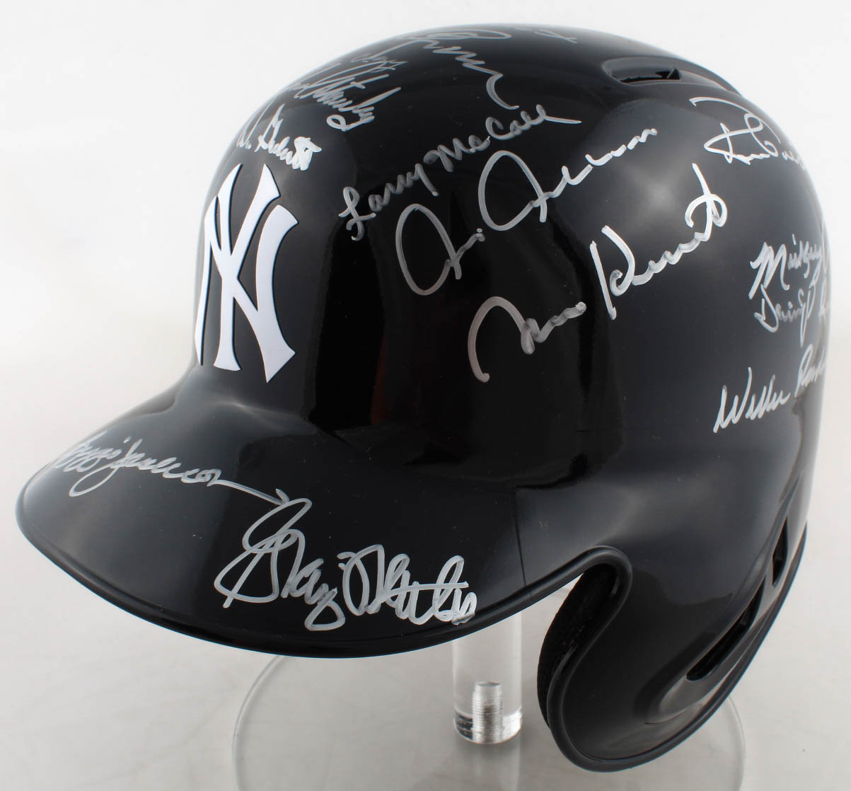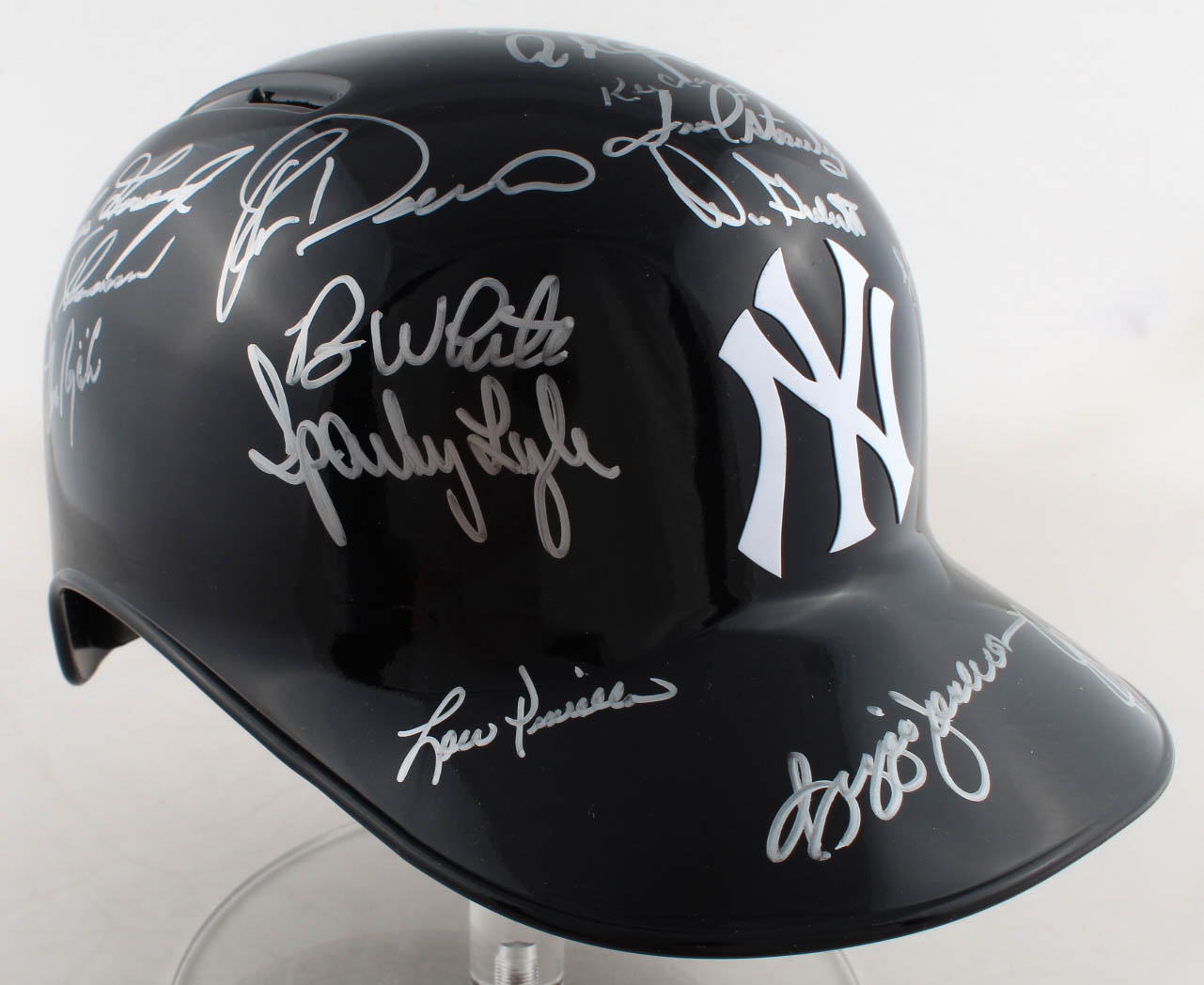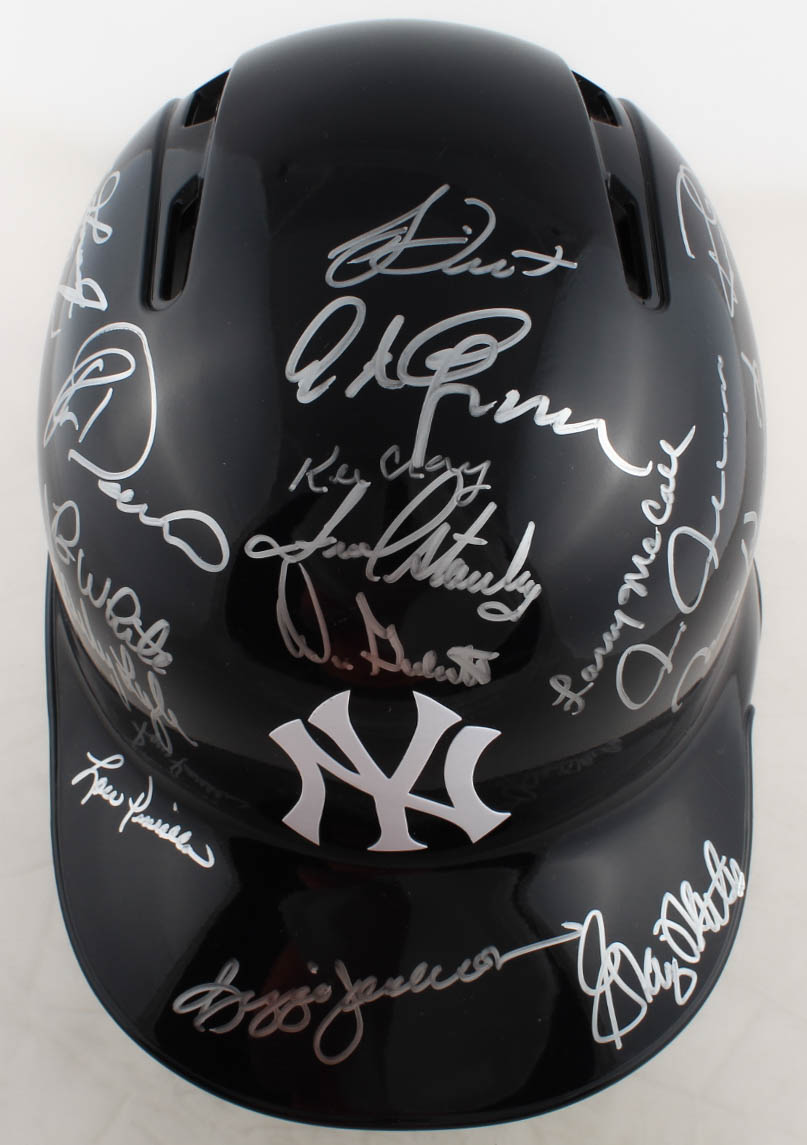 Rawlings New York Yankees full-size replica batting helmet. Hand-signed by Reggie Jackson, Goose Gossage, Ron Guidry, Graig Nettles, Mickey Rivers, Gary Thomasson, Dave Rajsich, Ron Davis, Roy White, Sparky Lyle, Lou Piniella, Don Gullett, Fred Stanley, Ken Clay, Bucky Dent, Ed Figueroa, Larry McCall, Chris Chambliss, Mike Heath, Willie Randolph and Domingo Ramos.