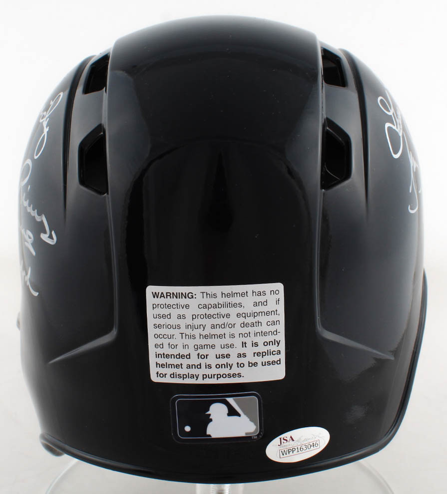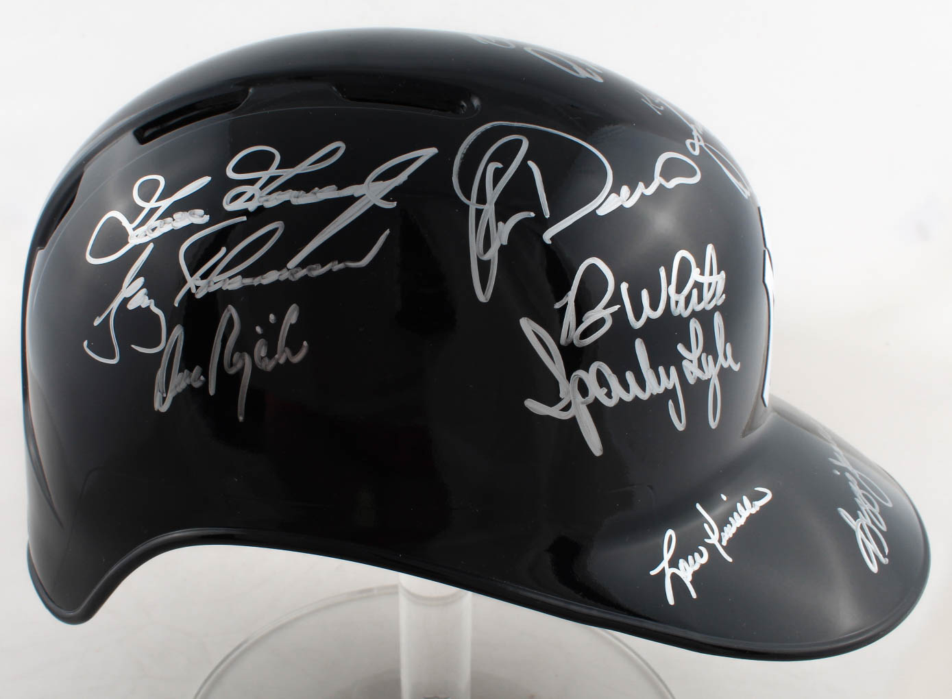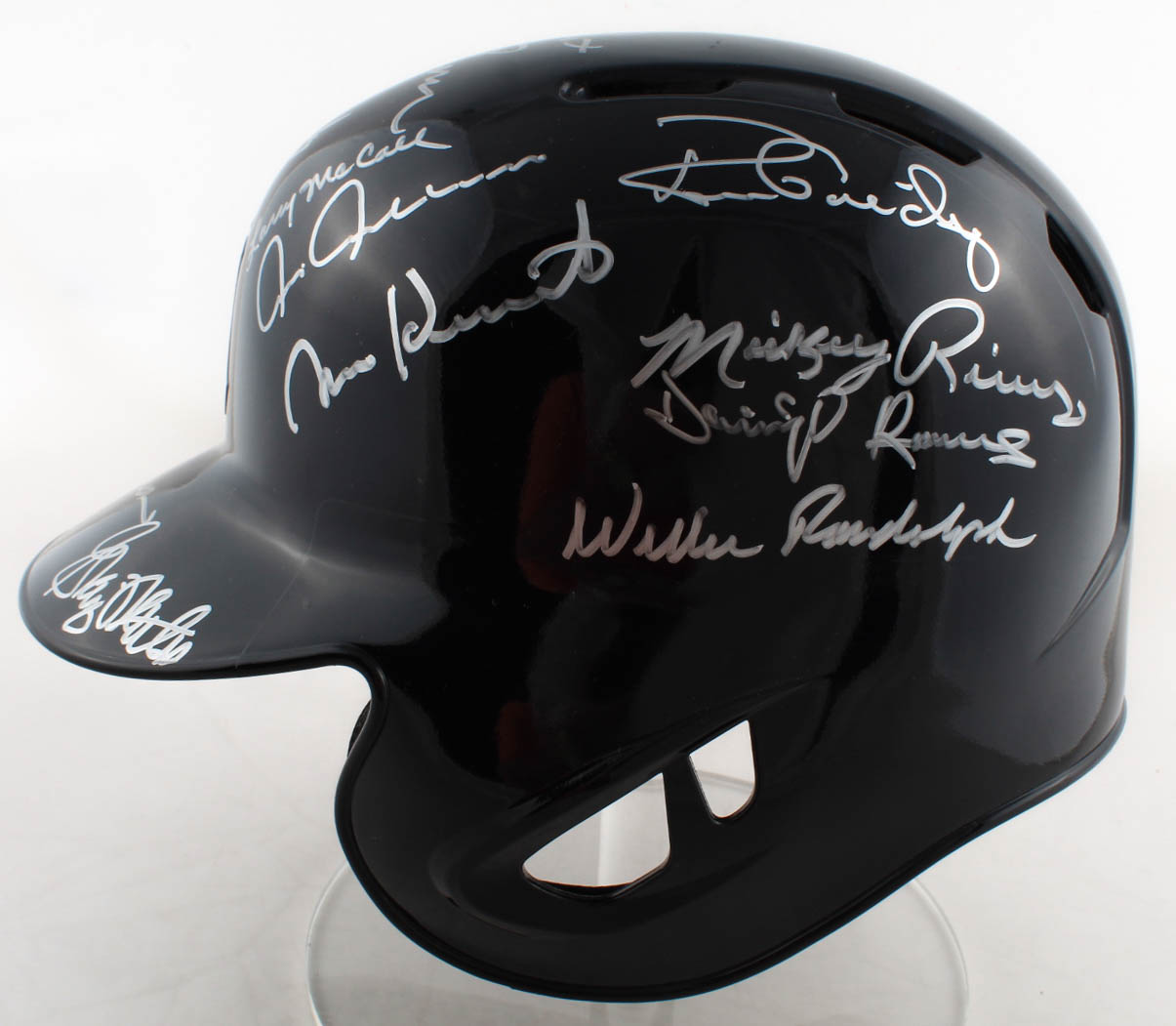 Rawlings New York Yankees full-size replica batting helmet. Hand-signed by Reggie Jackson, Goose Gossage, Ron Guidry, Graig Nettles, Mickey Rivers, Gary Thomasson, Dave Rajsich, Ron Davis, Roy White, Sparky Lyle, Lou Piniella, Don Gullett, Fred Stanley, Ken Clay, Bucky Dent, Ed Figueroa, Larry McCall, Chris Chambliss, Mike Heath, Willie Randolph and Domingo Ramos.