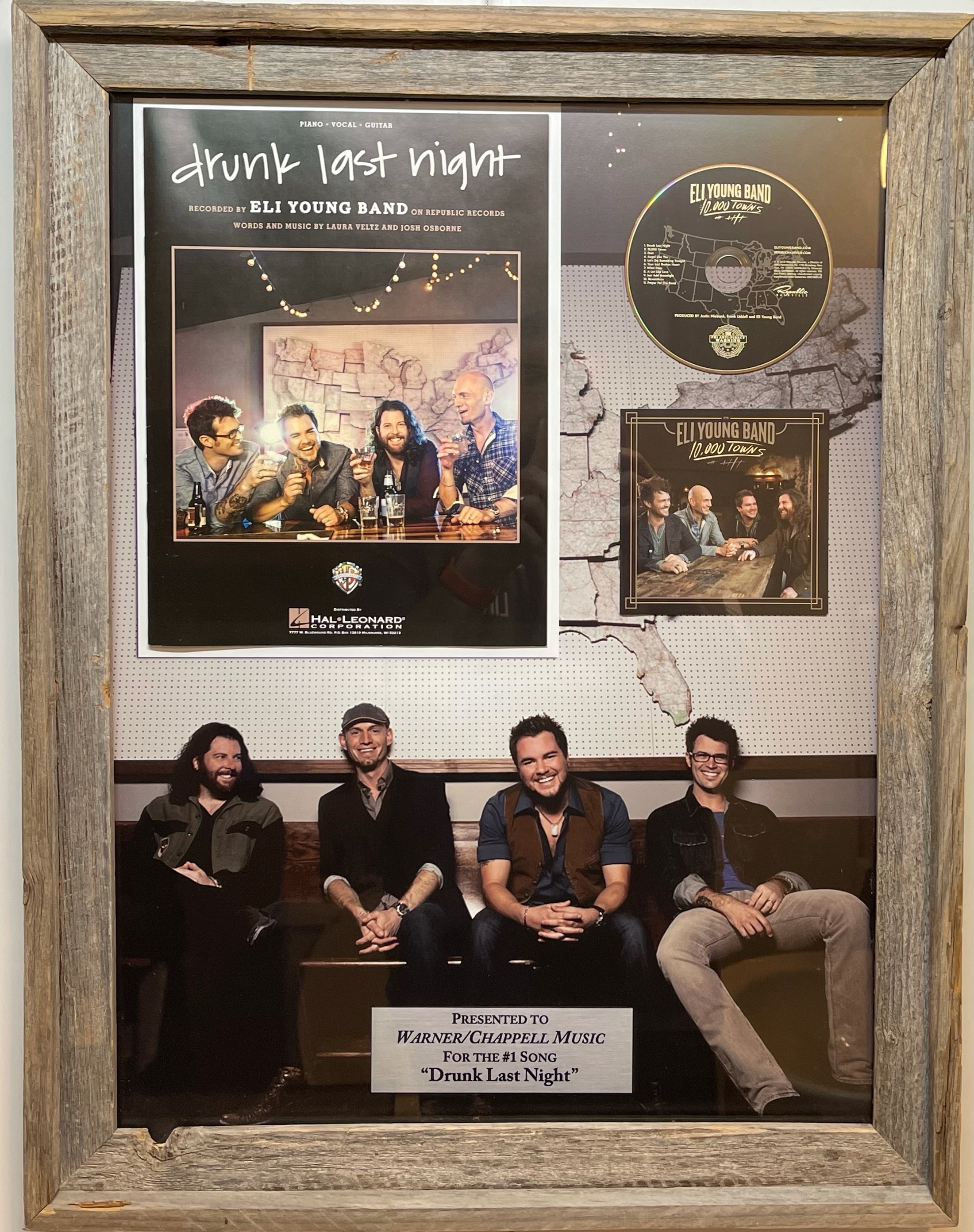 Eli Young Band "Drunk Last Night" 20.5x27 Custom Framed #1 Song Award