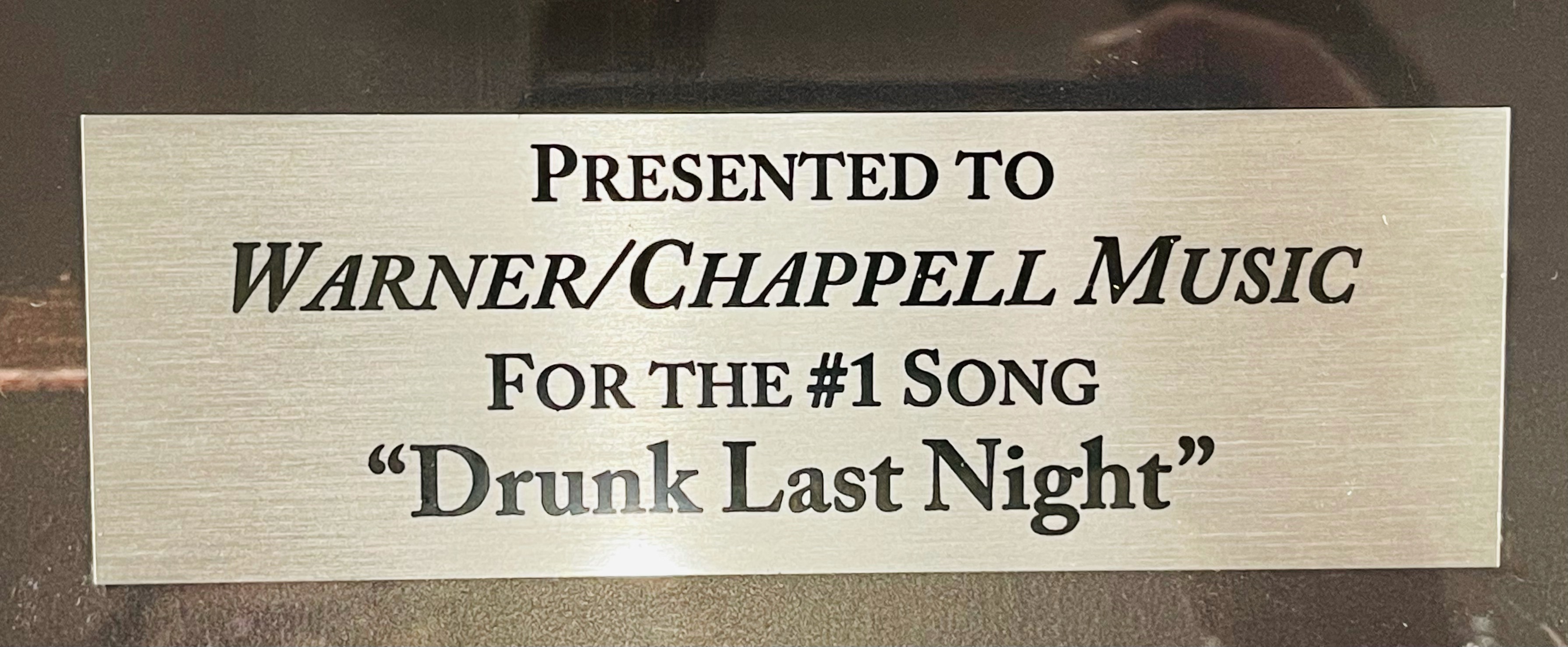 Custom frame made from bar wood measures approximately 20.5" x 27" in size and features the #1 Song Award for Eli Young Band's "Drunk Last Night".