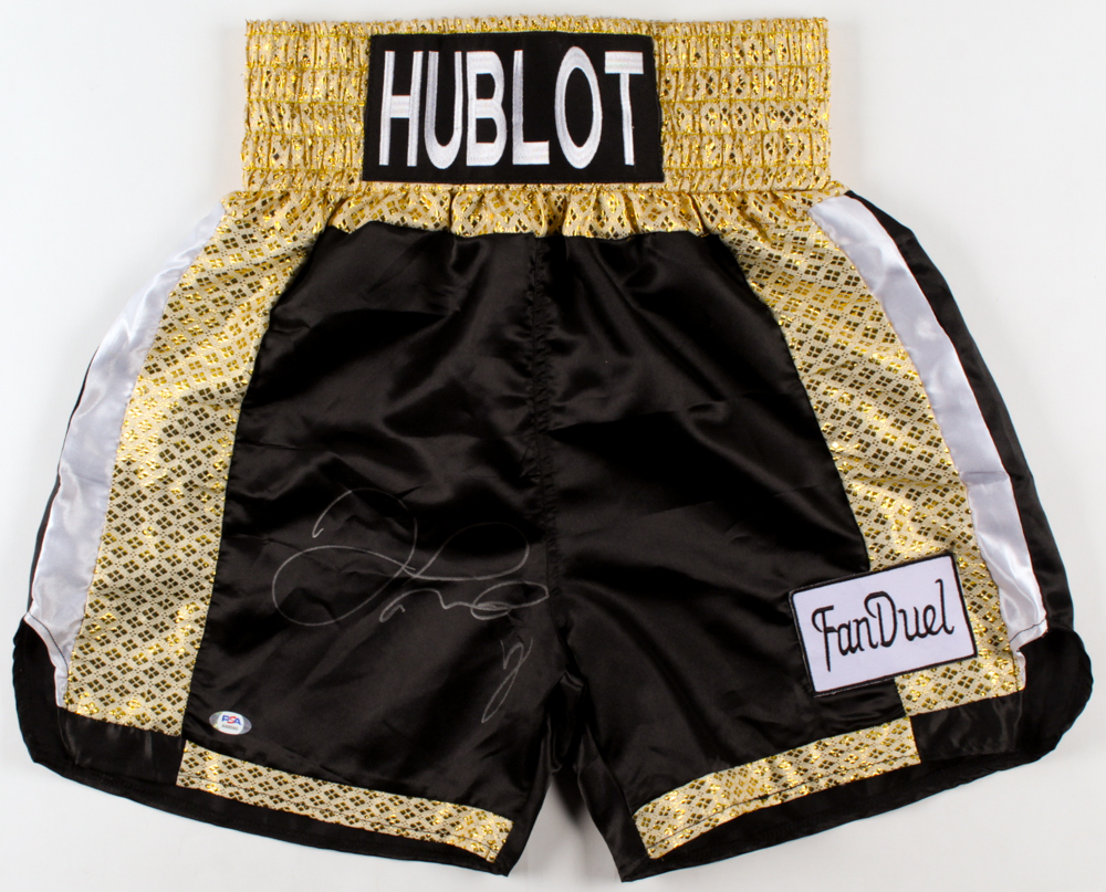 Custom boxing shorts have been hand-signed by Floyd Mayweather Jr.