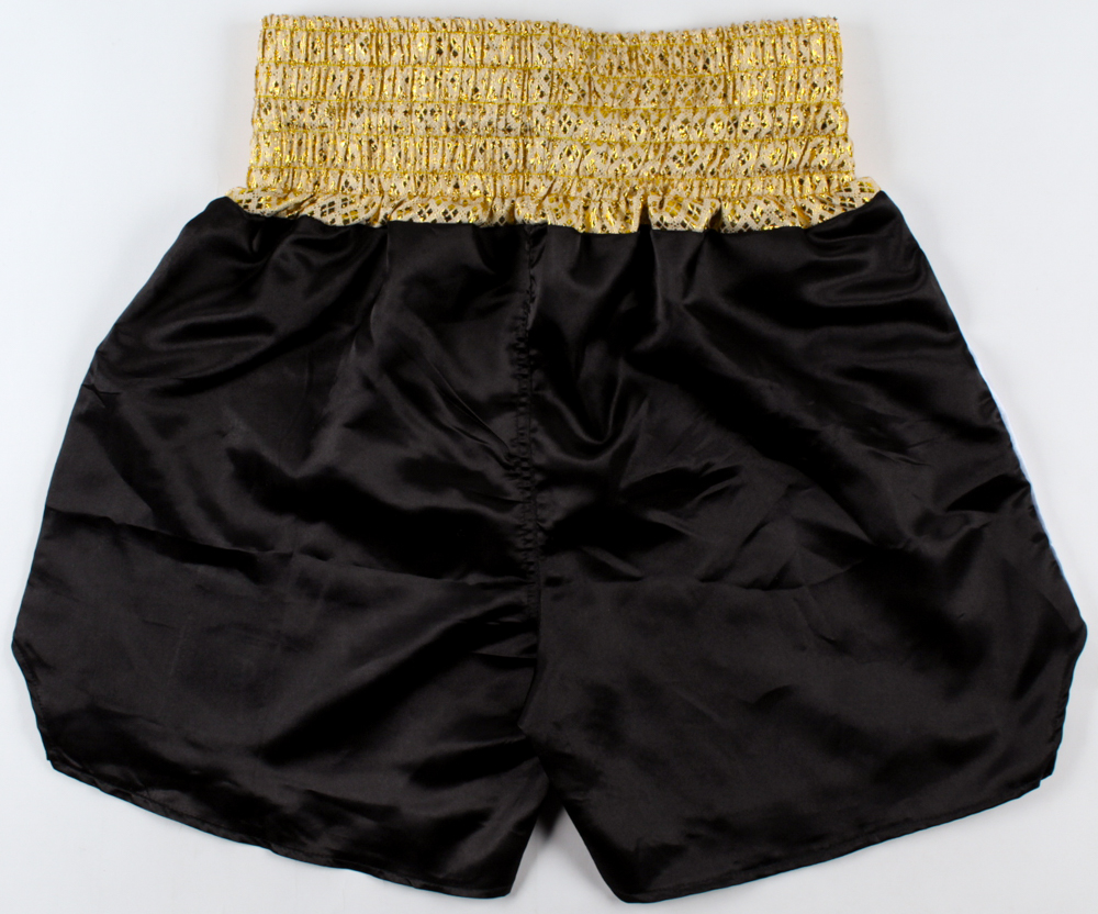 Custom boxing shorts have been hand-signed by Floyd Mayweather Jr.