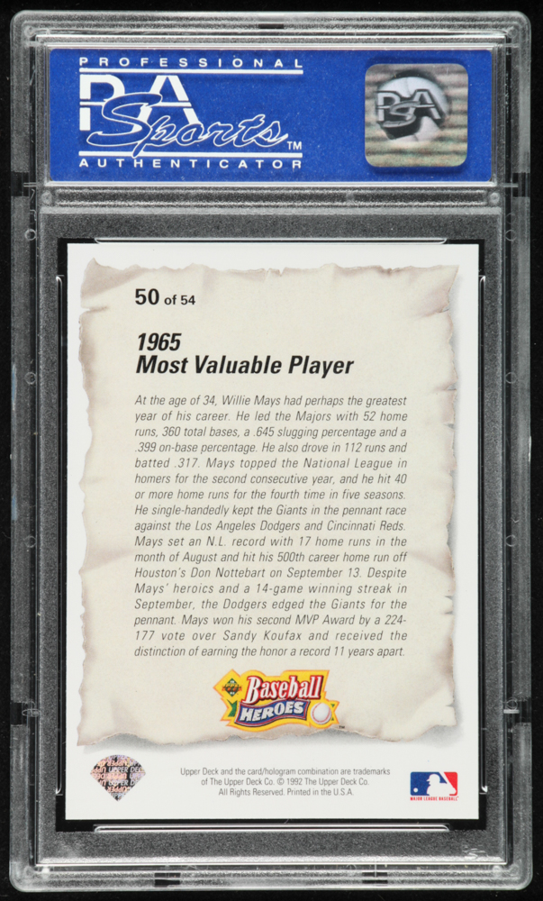 Willie Mays 1993 Upper Deck Heroes #50 1965 Most Valuable / Player (PSA 10)
