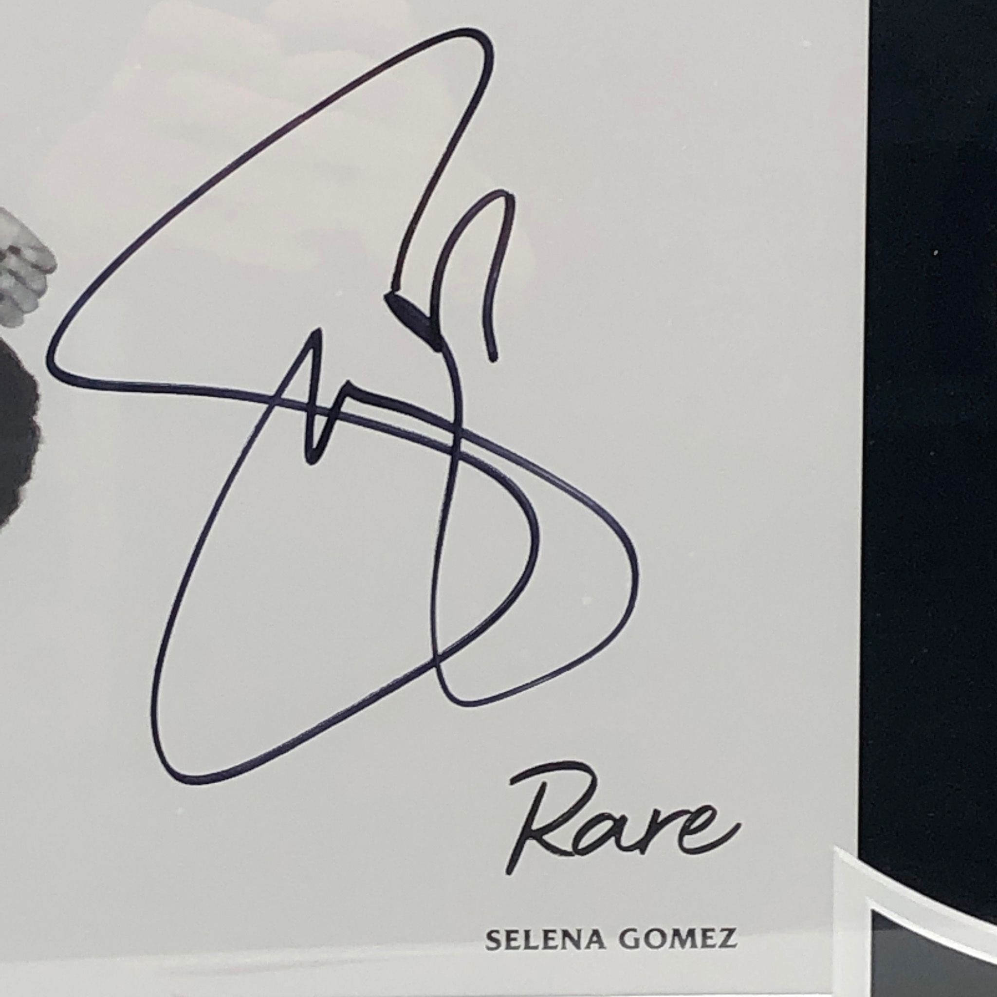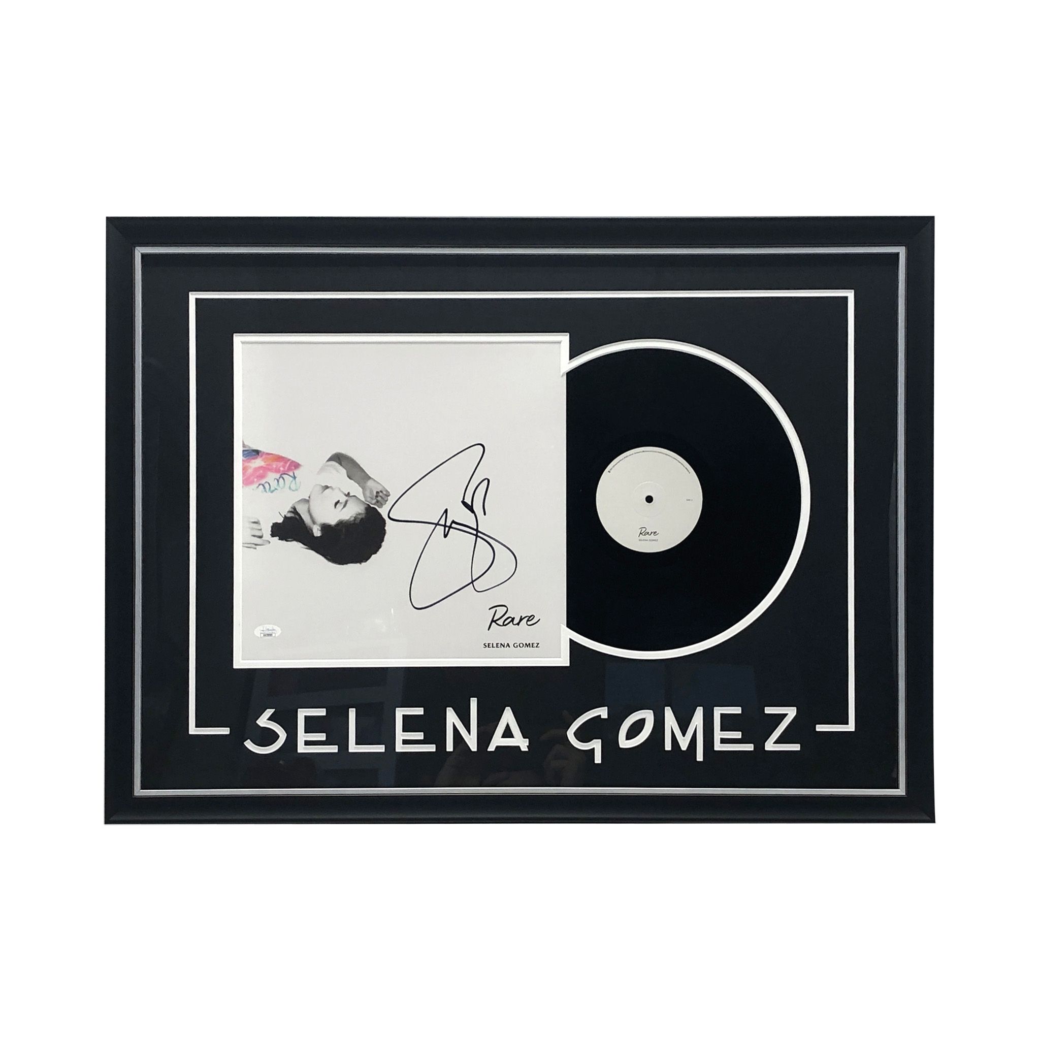 Custom frame measures 22" x 30" in size and features a vinyl record that has been hand-signed by Selena Gomez.