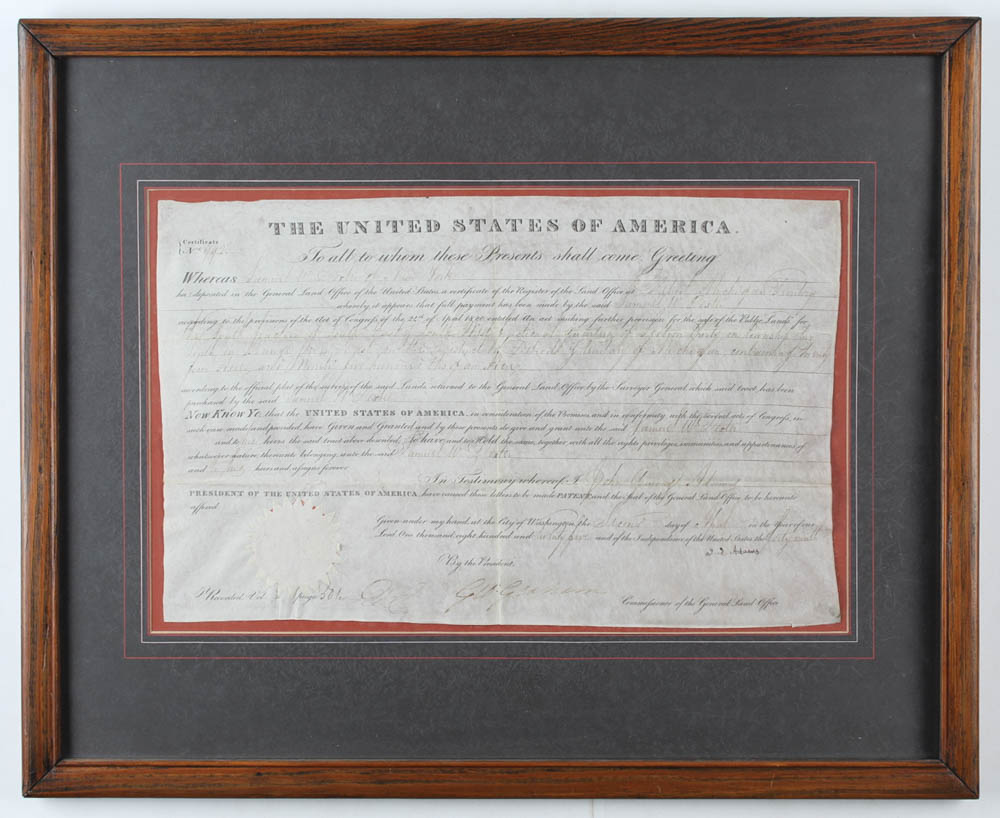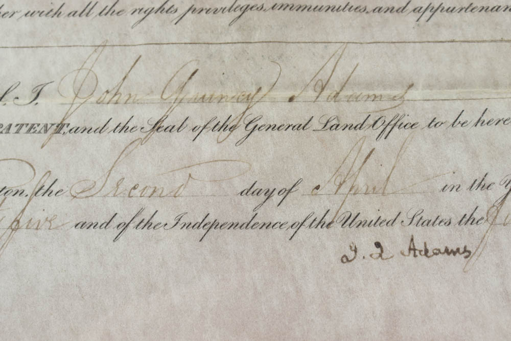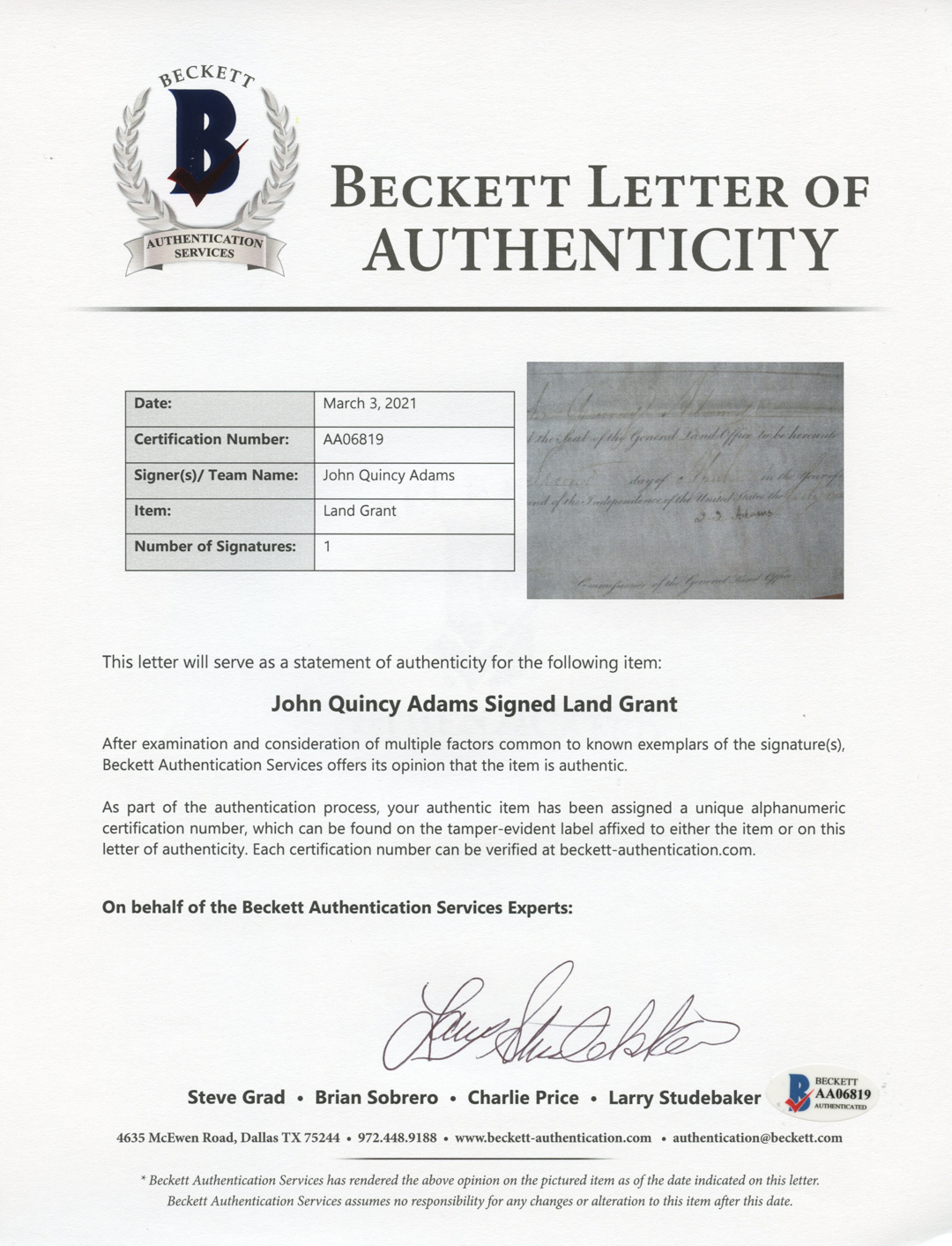 John Quincy Adams Signed Custom Framed Original 1825 Land Grant (Beckett LOA)