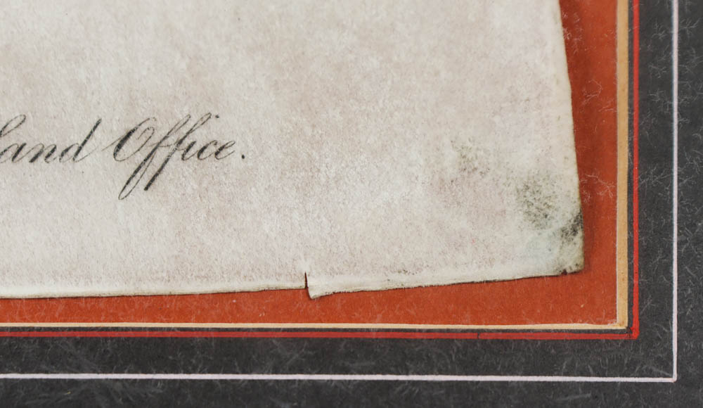 Custom framed display measures 17.5" x 21.25" in size and features a land grant letter dated April 2nd, 1825, that has been hand-signed by John Quincy Adams (D. 1848).
