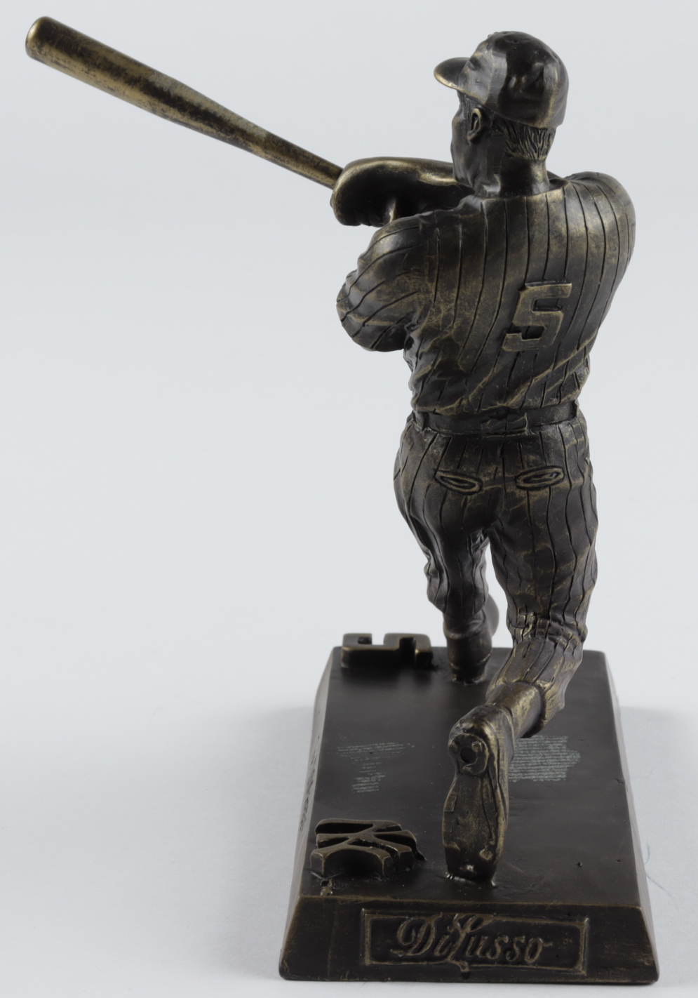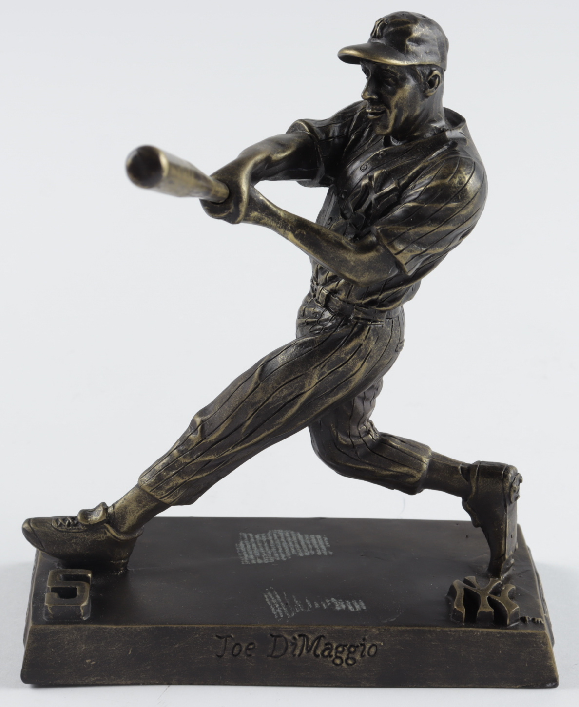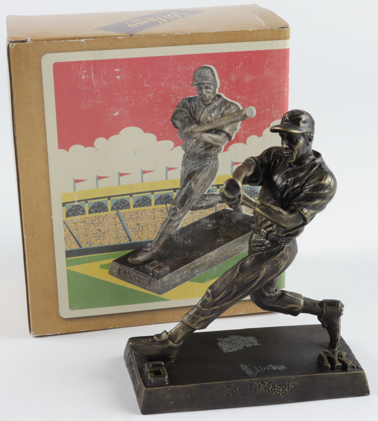 Figure measures approximately 5.5" in height. Features a bronze statue of Joe DiMaggio. Statue comes with original box as shown. Please note, the box shows signs of wear.