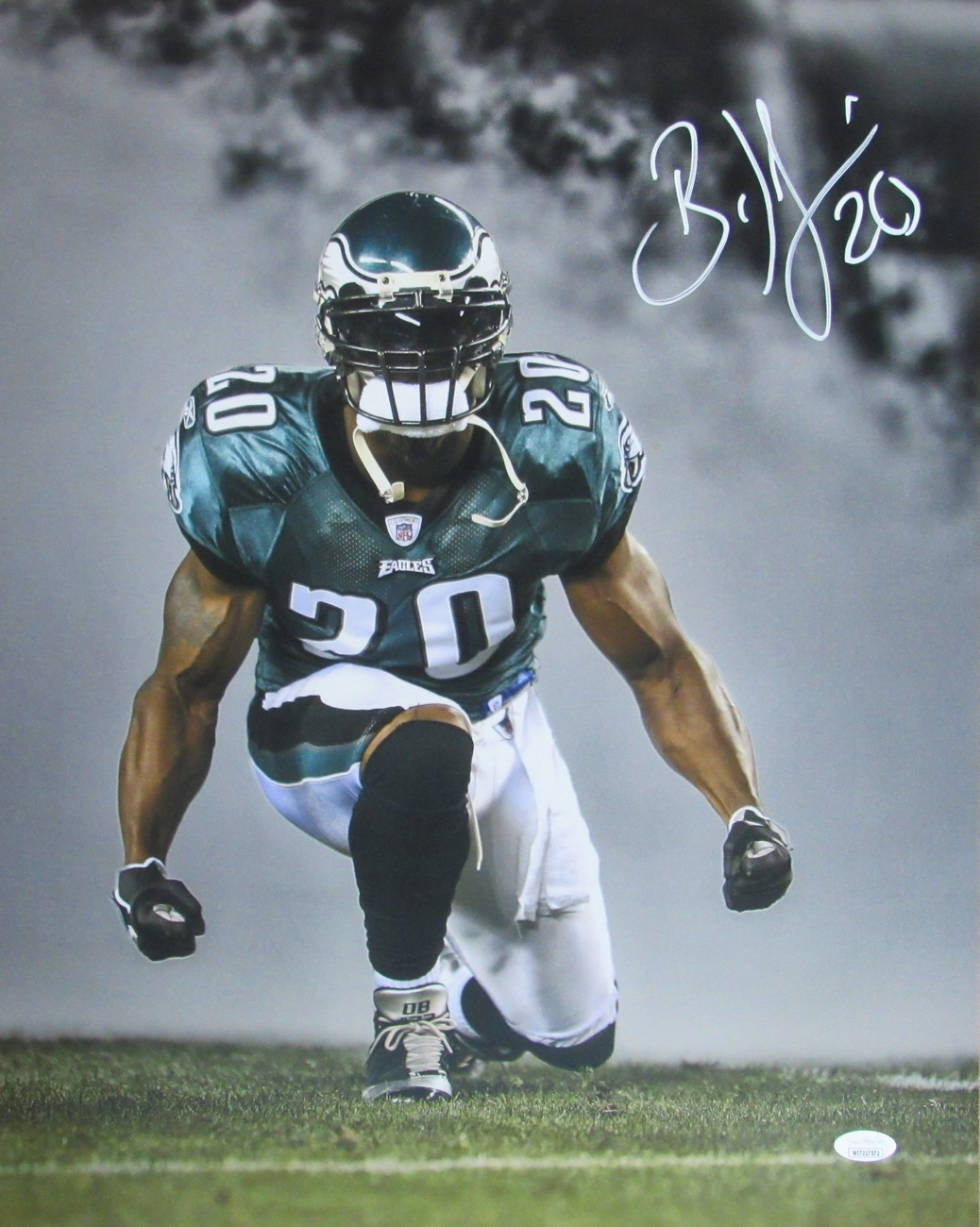 Photo measures 16" x 20" in size and has been hand-signed by Brian Dawkins (Philadelphia Eagles, HOF).