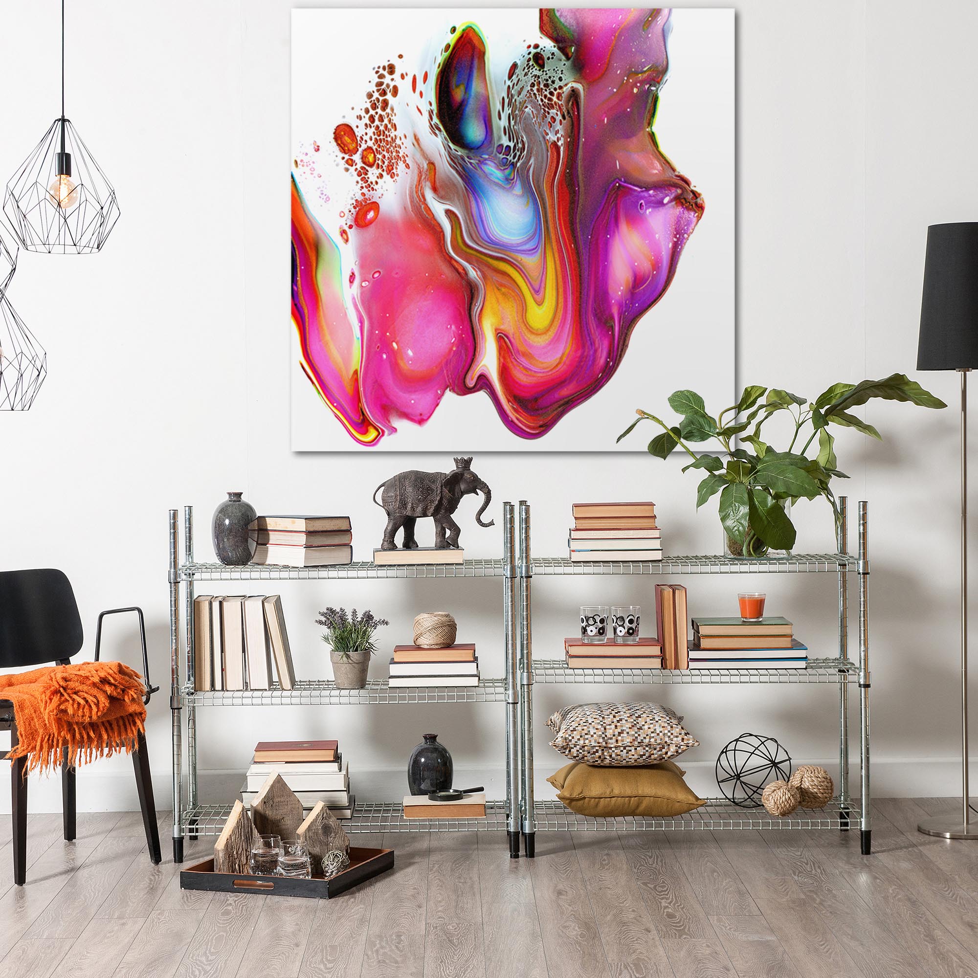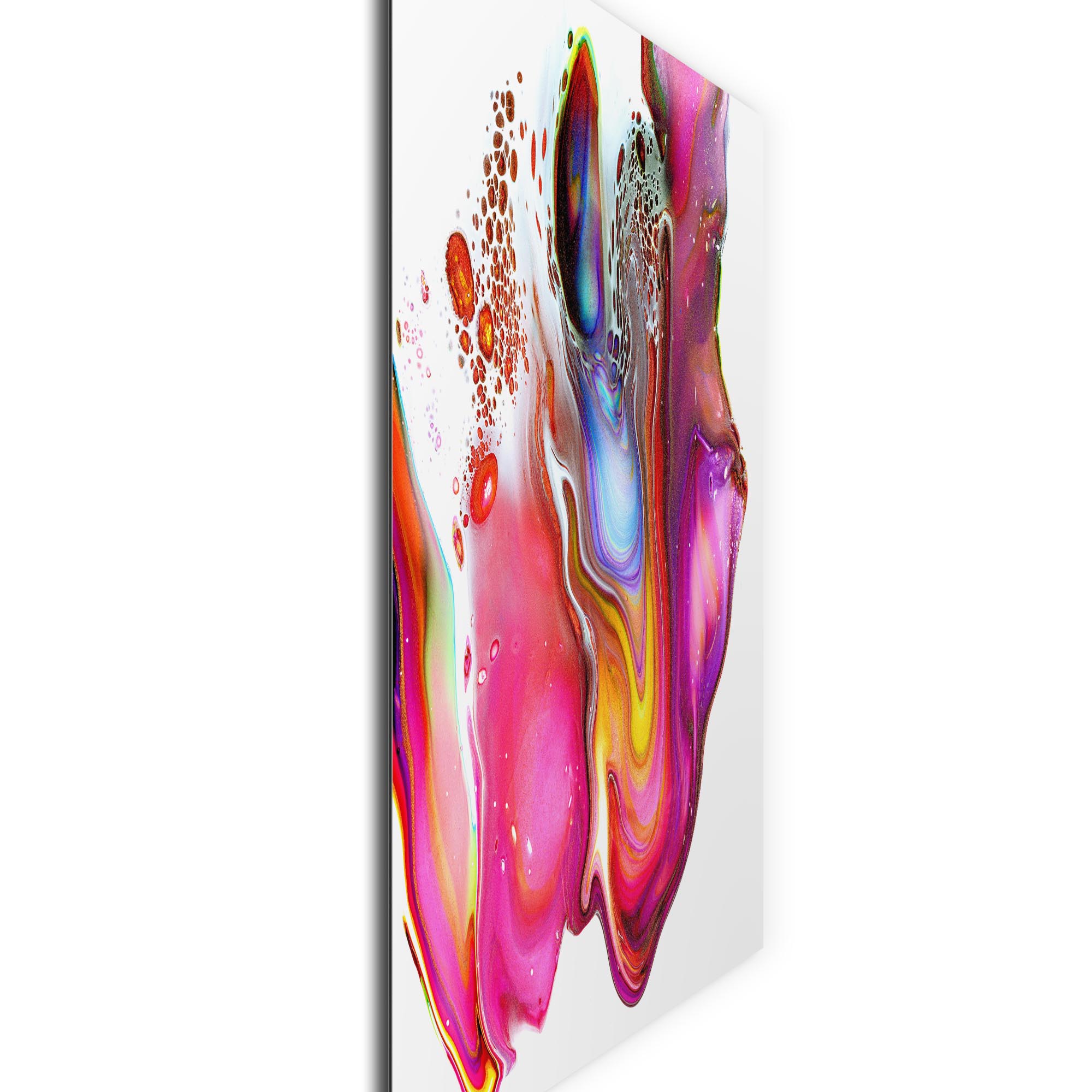 Warped is unapologetically bold and brazen, as the colorful artwork bursts from your wall in rich, crisp hues of pink, violet, yellow, and white. The gorgeous contemporary painting by Cincinnati artist Elana Reiter has been reproduced as a high-resolution giclee print on a rigid aluminum composite panel, suitable for both indoor and outdoor placement. This abstract wall art is presented with fluidity, movement, balance and intrigue, making for an instant conversation piece in your home or office. The attractive artwork displays beautifully in a variety of settings and across various decorating styles, including contemporary, urban, eclectic & modern home decor, and in living rooms, bedrooms, offices, and more.