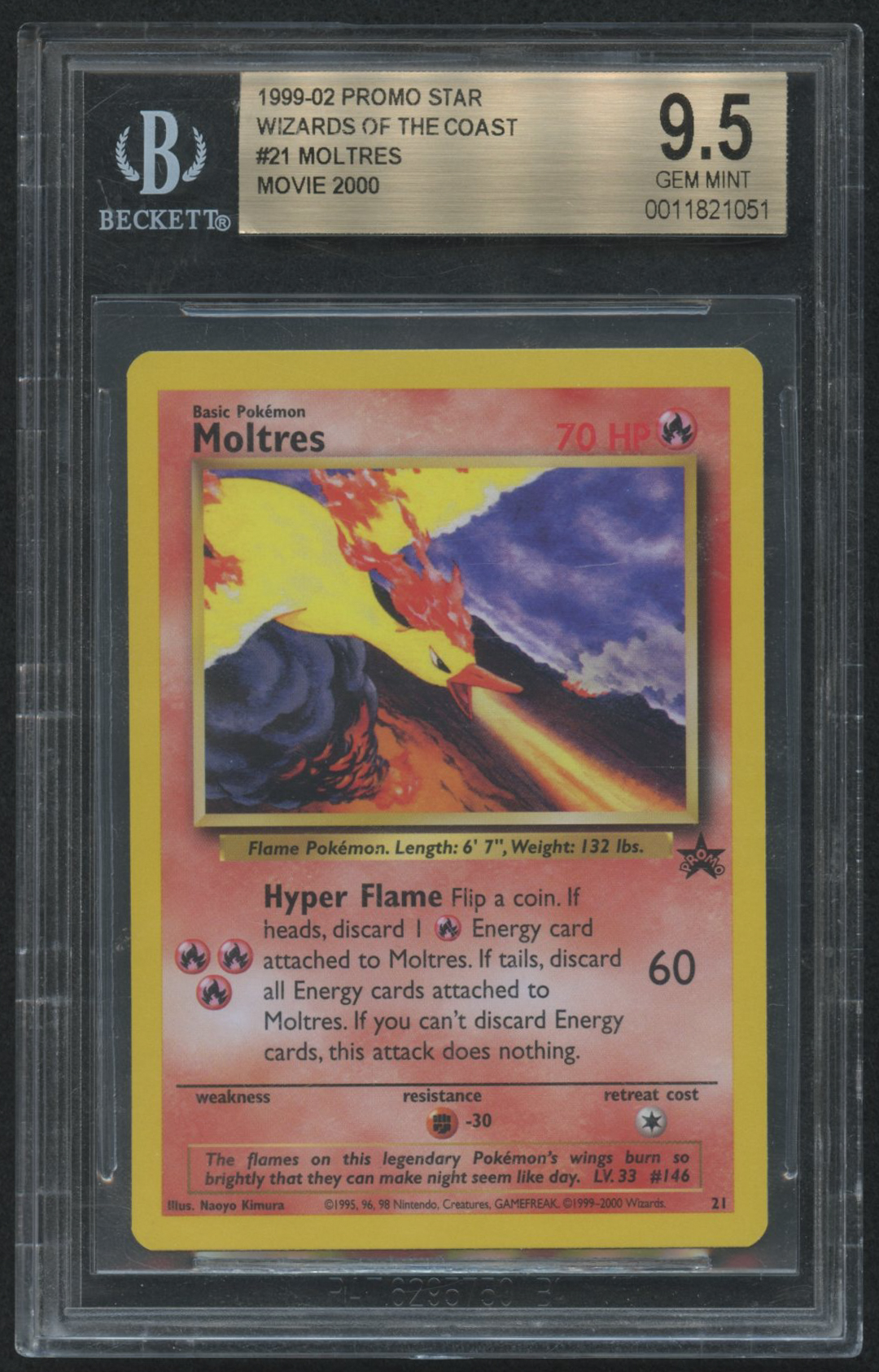 Moltres 1999-02 Pokemon Wizards of the Coast Black Star Promos #21 Movie 2000 (BGS 9.5)