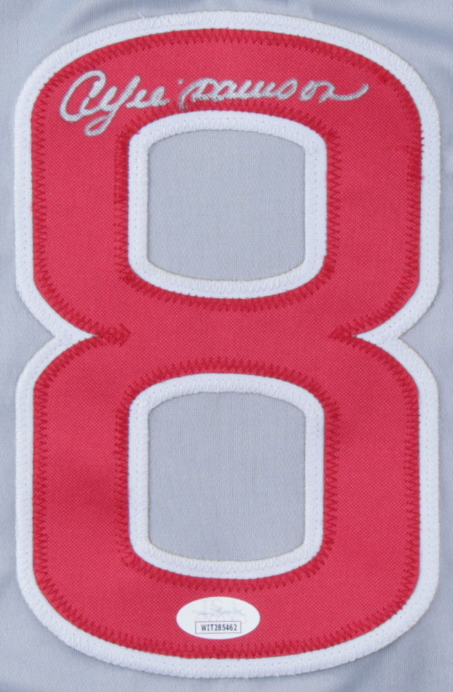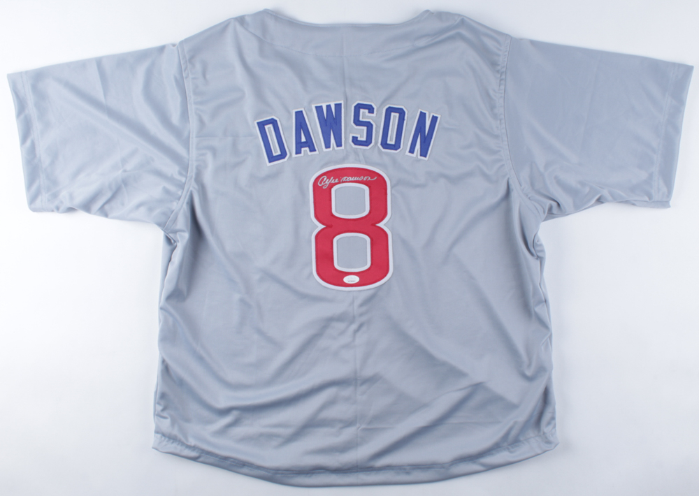 Custom on-field style jersey. Everything sewn on, size XL. Has been hand-signed by Andre Dawson (HOF).