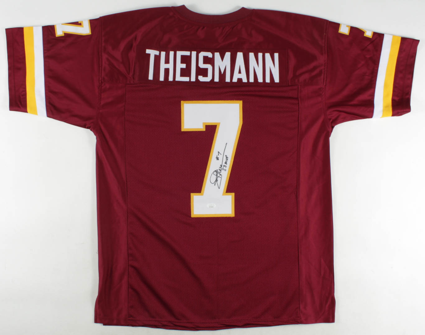 Custom on-field style jersey. Everything is sewn on, size XL. Hand-signed and inscribed by Joe Theismann.