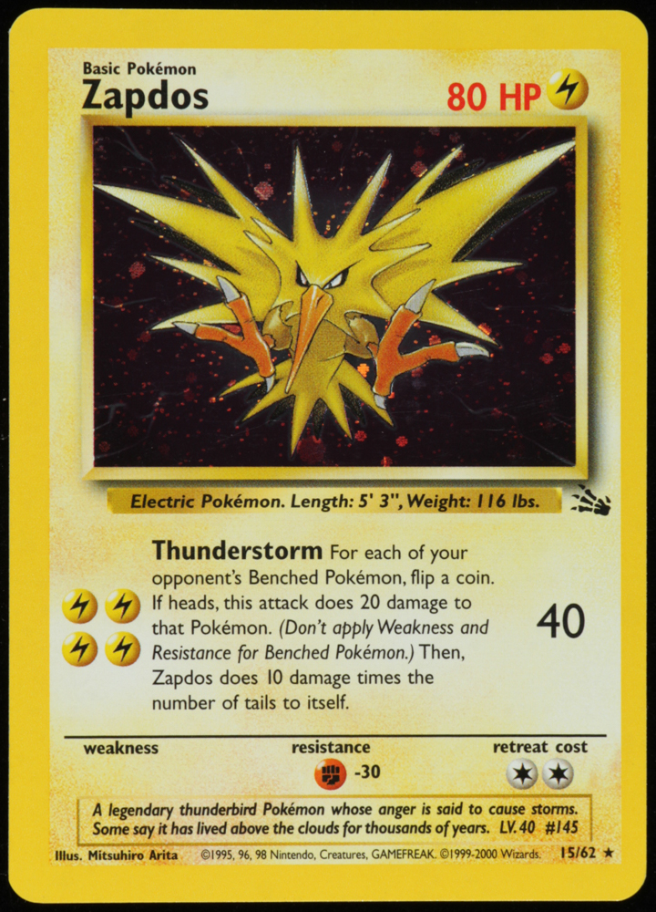 Zapdos 1999 Pokemon Fossil #15 HOLO