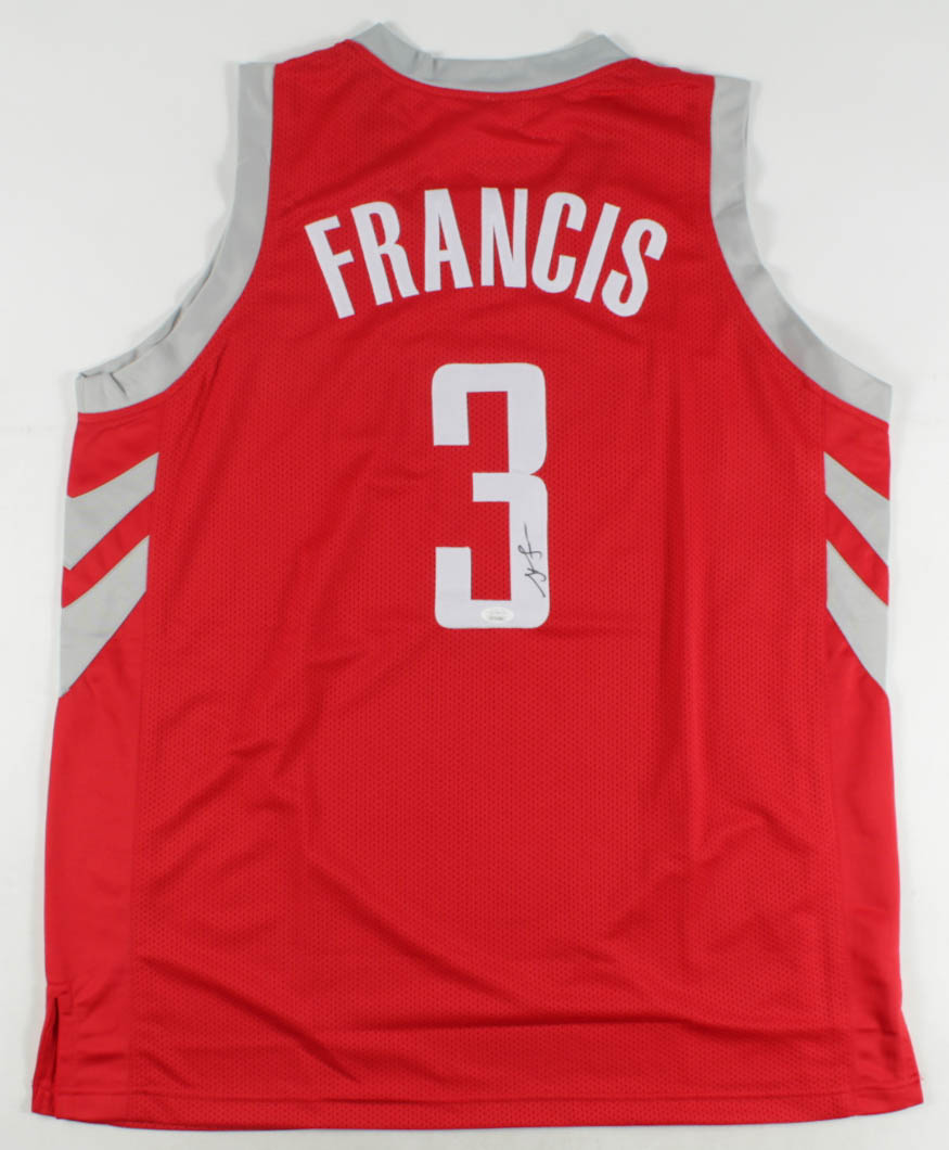 Custom on-court style jersey. Everything is sewn on, size XL. Has been hand-signed by Steve Francis.