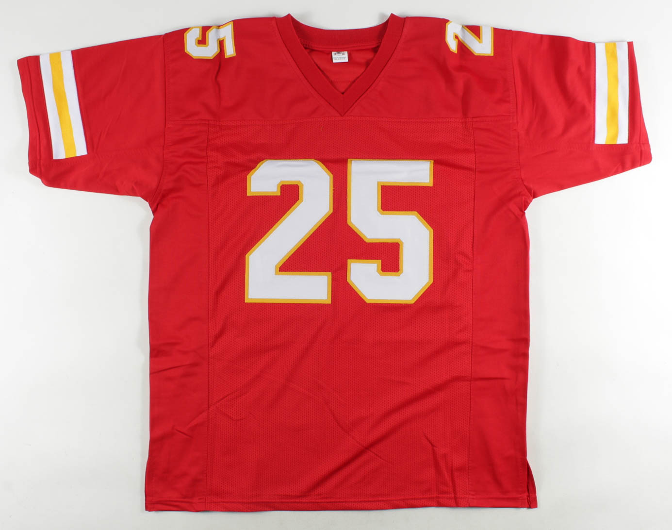 Custom on-field style jersey. Everything is sewn on, size XL. Has been hand-signed by Jamaal Charles.