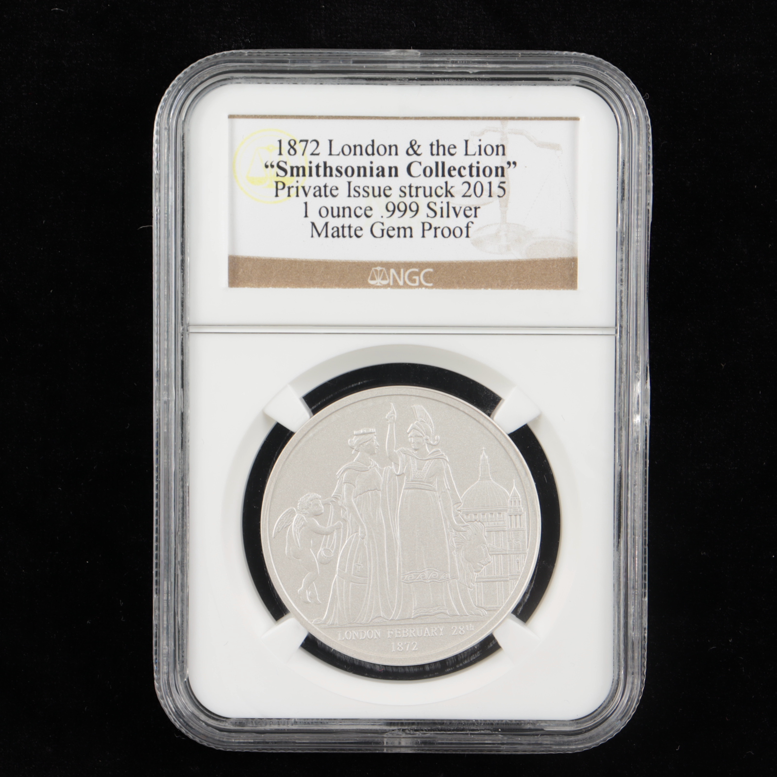 2015 "Smithsonian Collection" 1872 London & the Lion 1 Ounce .999 Fine Silver Coin (NGC Matte Gem Proof)