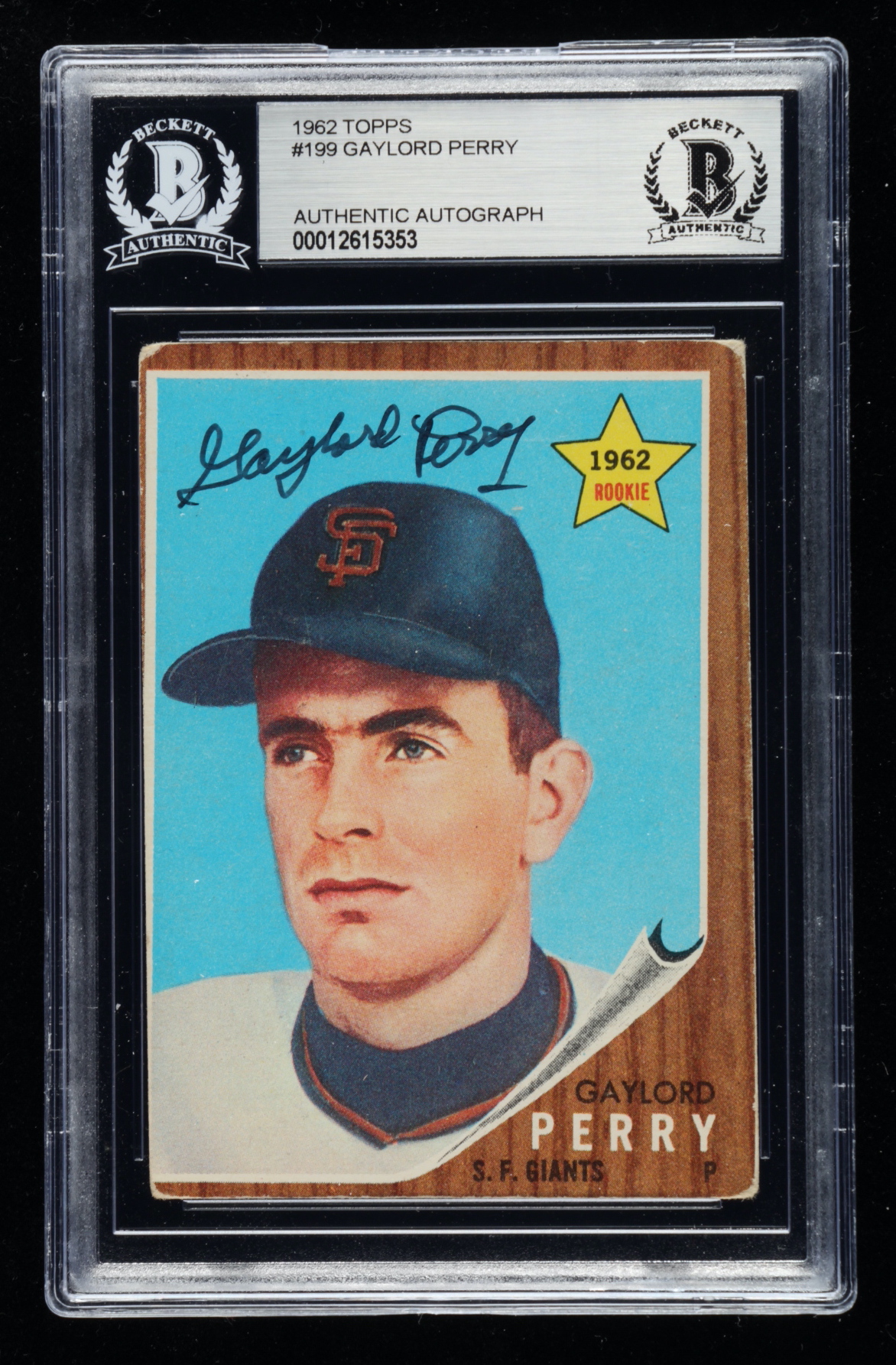 1962 Topps #199 RC has been hand-signed by Gaylord Perry (San Francisco Giants, HOF).
