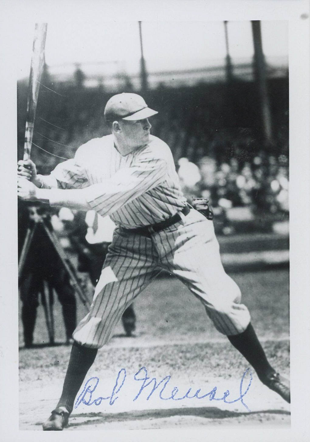 Photo measures 3.5" x 5" in size. Hand signed by Bob Meusel (D. 1977, New York Yankees).